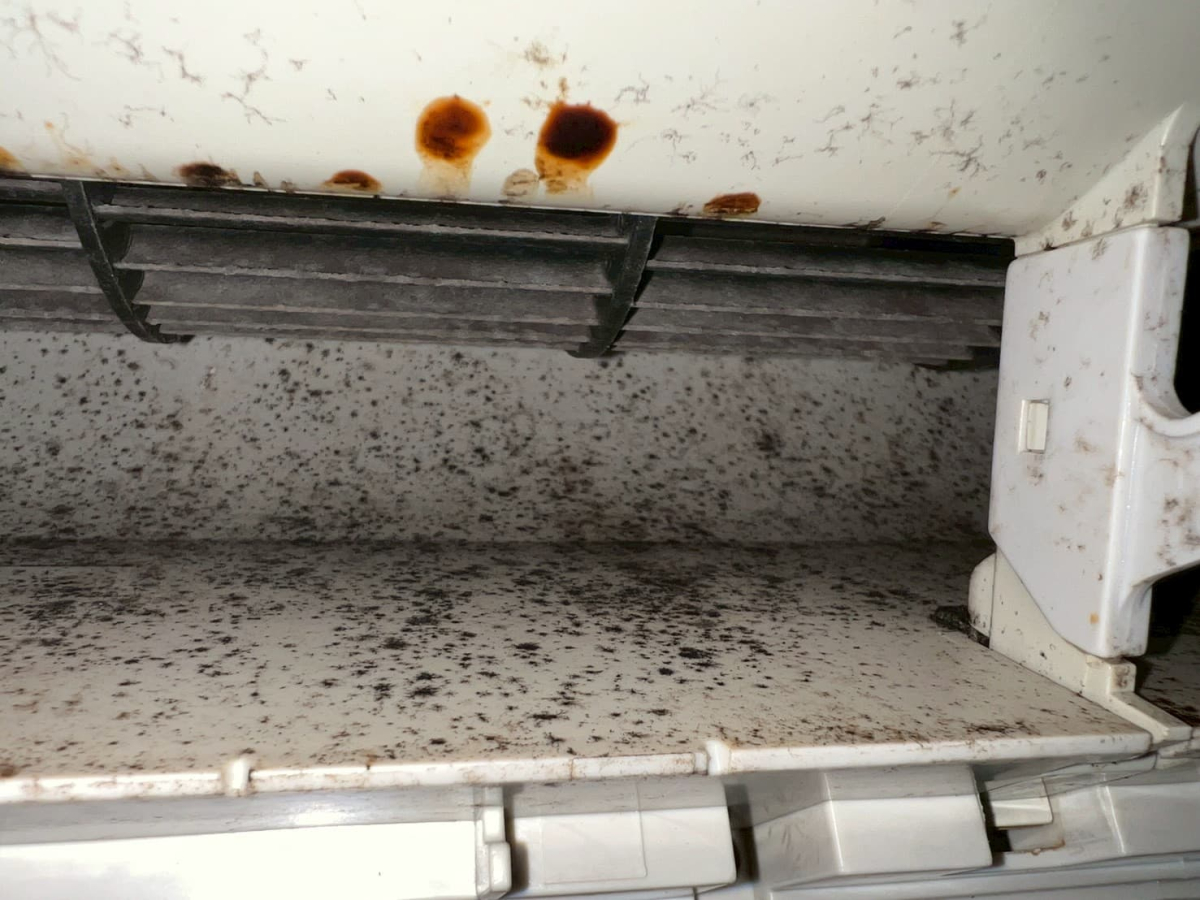 一見外からはわかりづらいですが、内部には黒い斑点状のカビが広がっており、