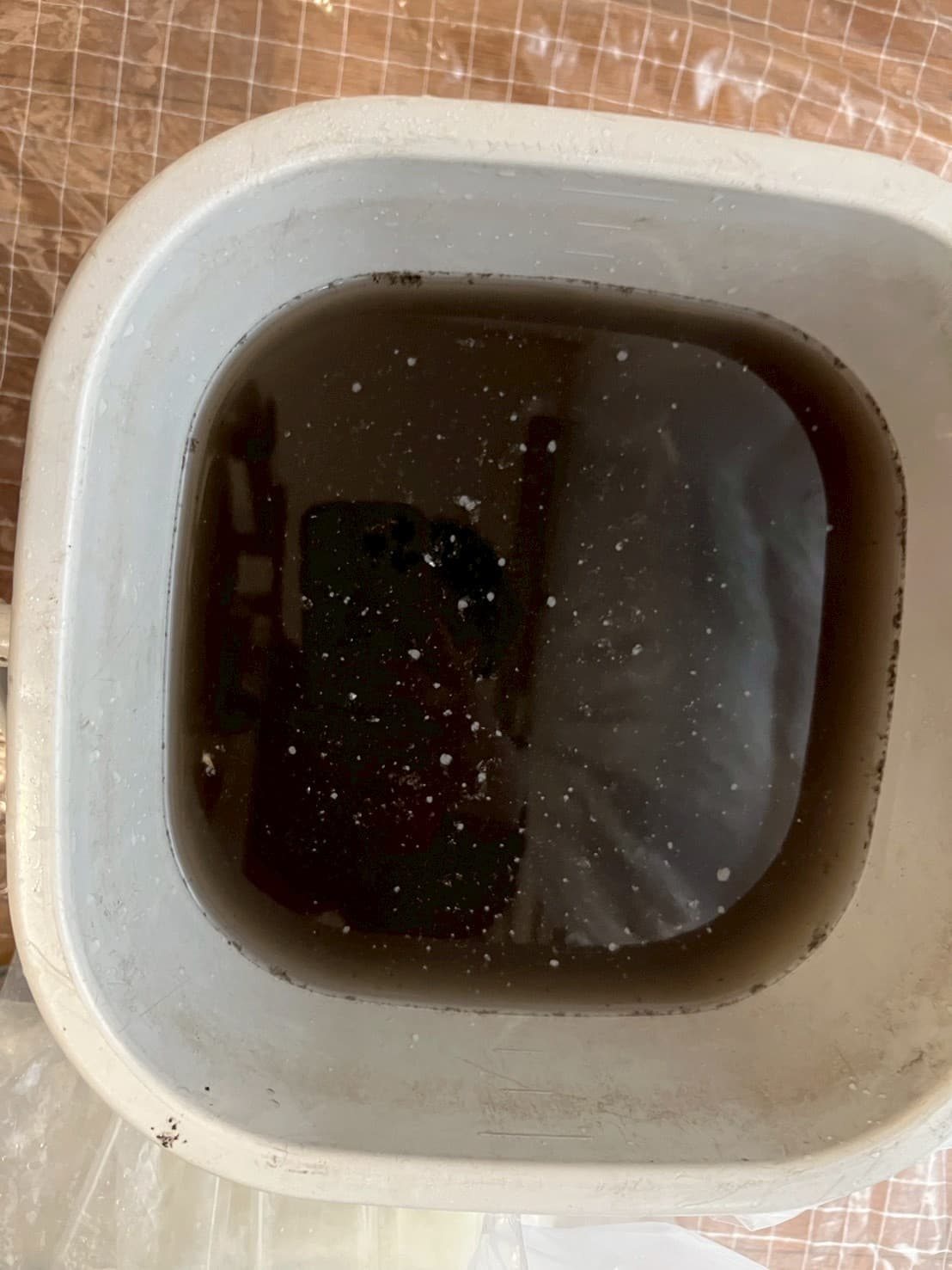 実際に排水を見ると、透明な水が黒く濁るほどの汚れが出てきました。