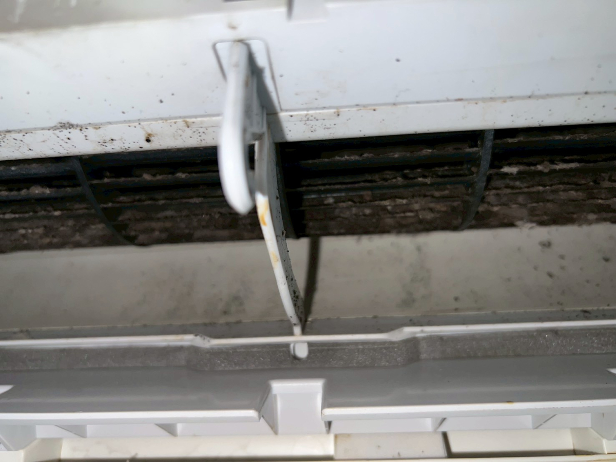 内部にはホコリとカビがかなり溜まっており、吹き出し口からの臭いが気になる状態でした。