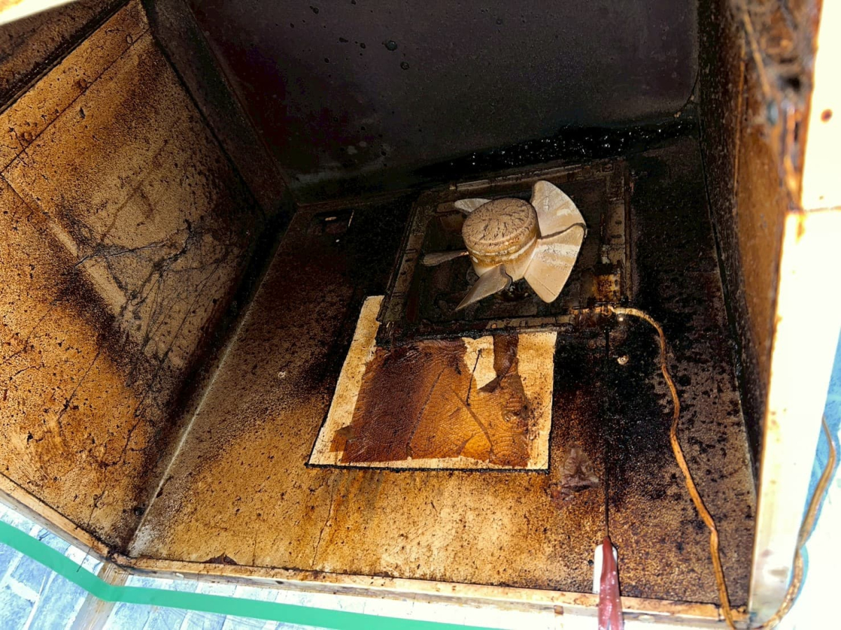 「ここまで頑張って換気してきたんだなぁ」と思わず感じるほど、油が全面に広がっていました。