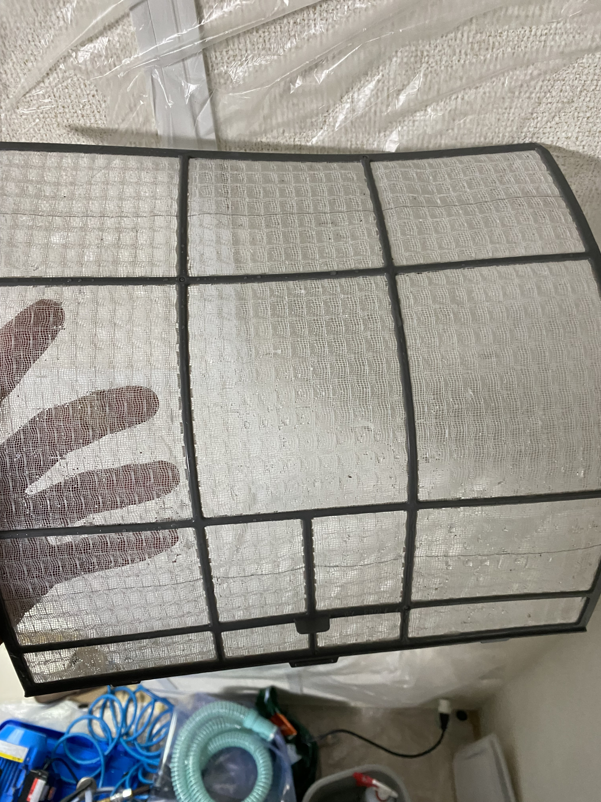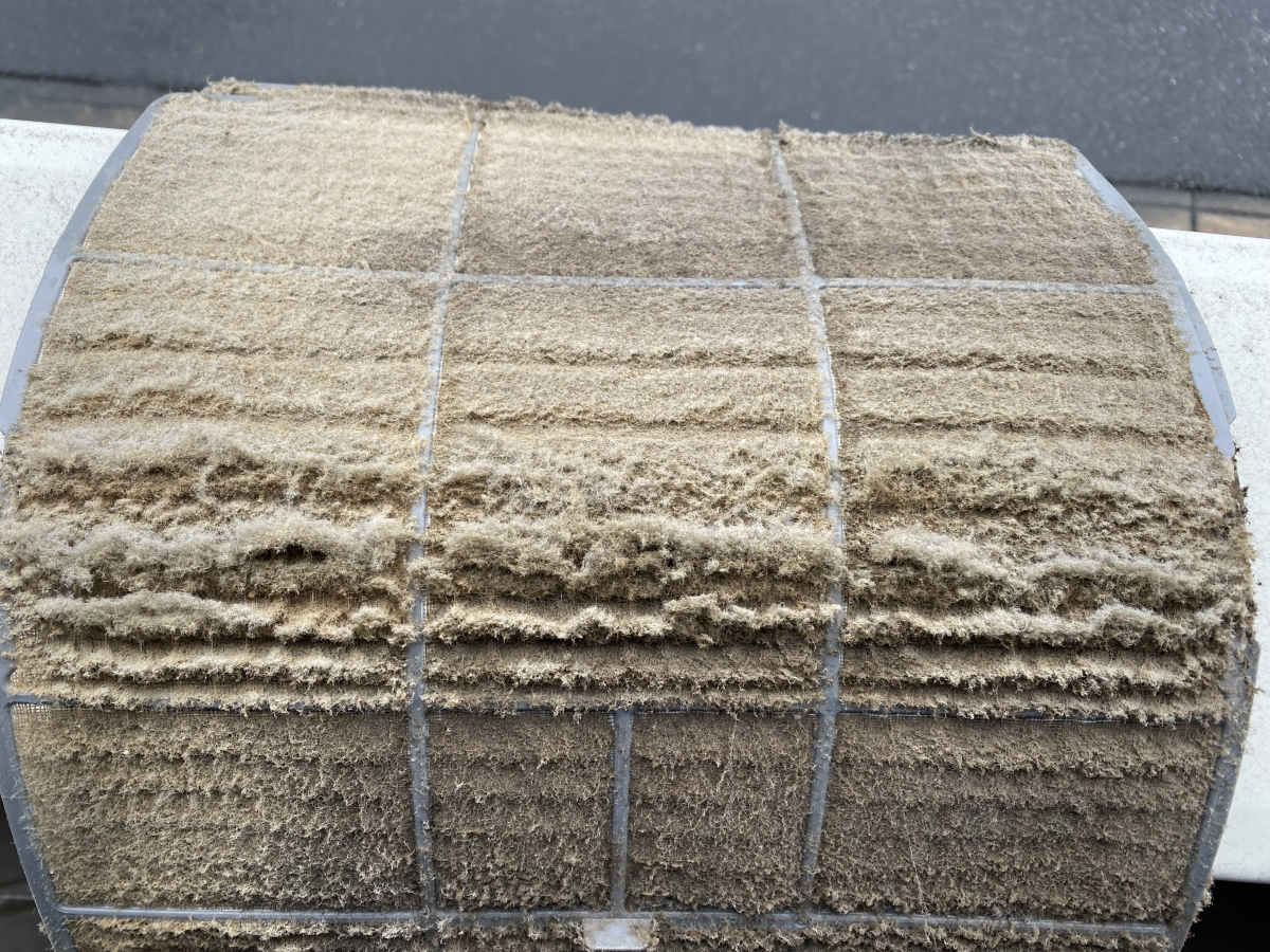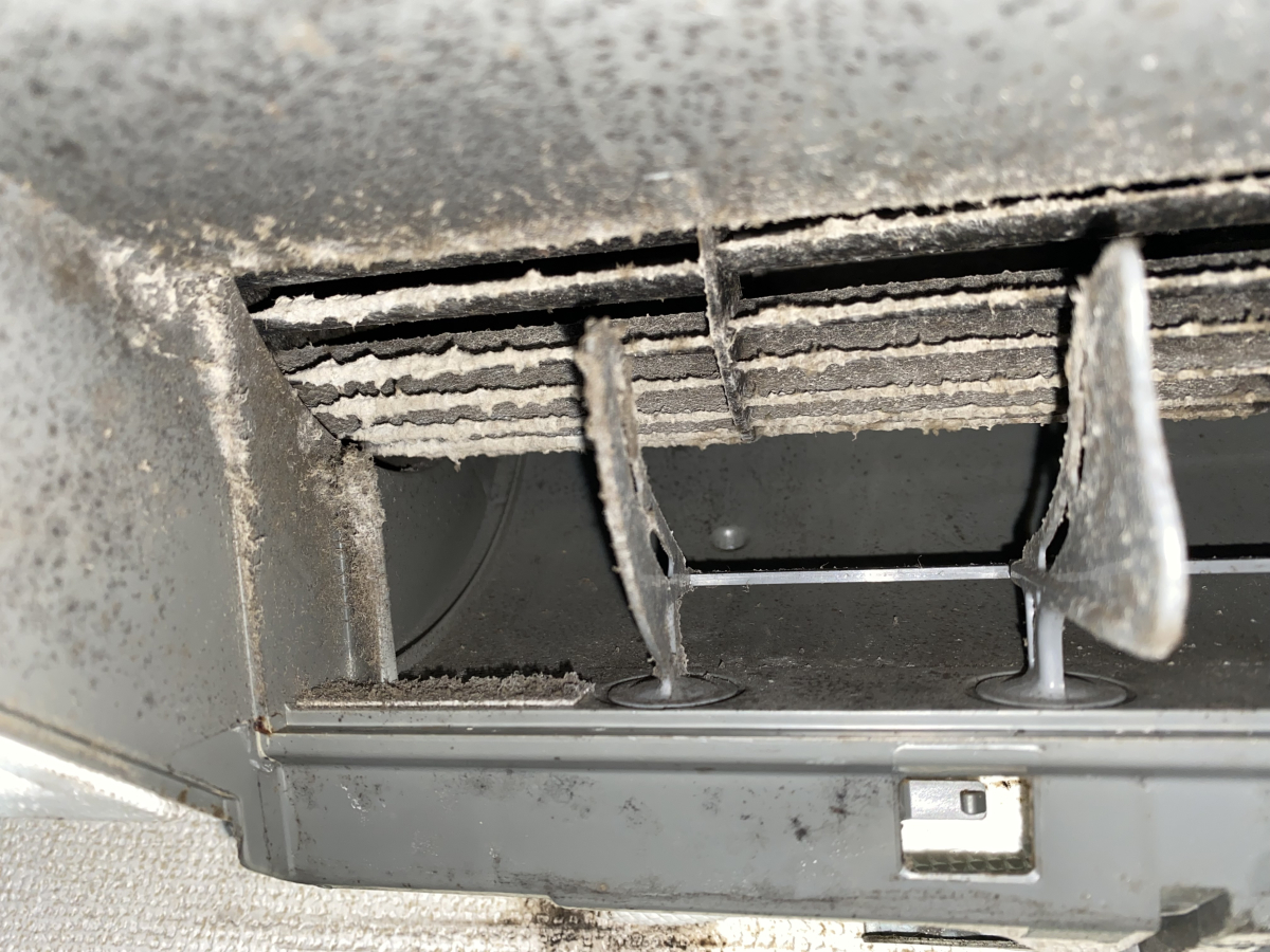 エアコンフィルターもこれでもかと埃がしっかりとついていて、こういった埃はカビの栄養になってしまい、カビの繁殖を促してしまいます。