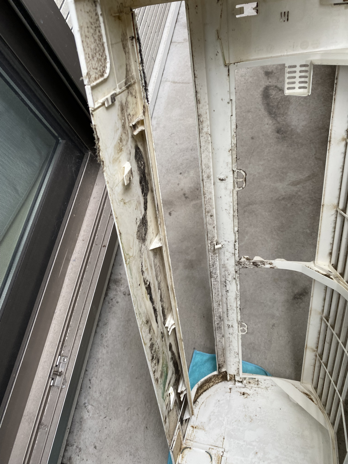 エアコンカバーの見えない部分もこんなに真っ黒になってしまうとイヤな臭いの原因となります。