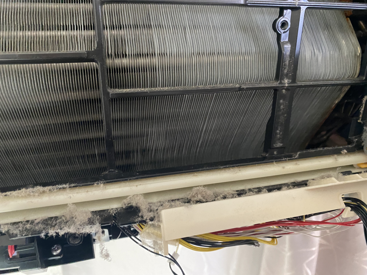 今回のエアコンも2年ぐらいの使用期間で中にこんな握った埃がピンポン球ぐらいの大きさになるぐらい埃が出てきました。