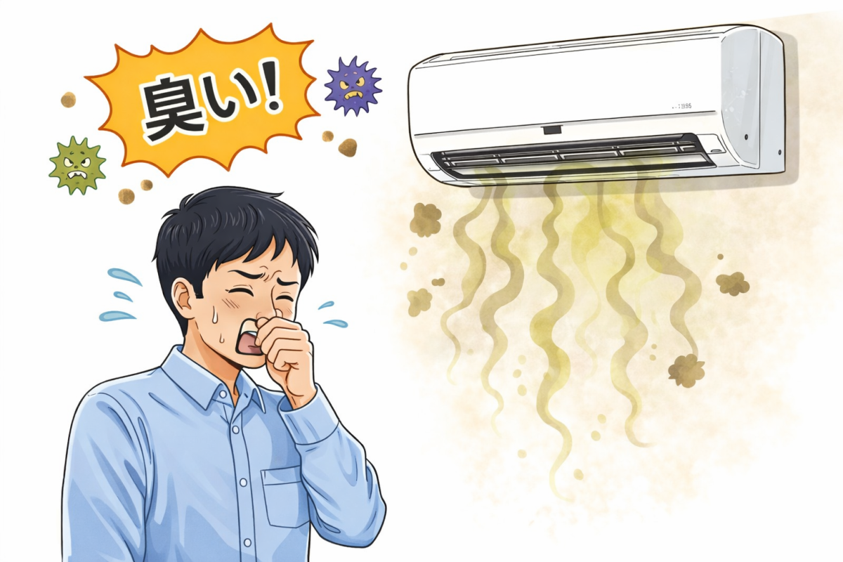 エアコン内部は湿気が多く、カビや雑菌が繁殖しやすい環境です。