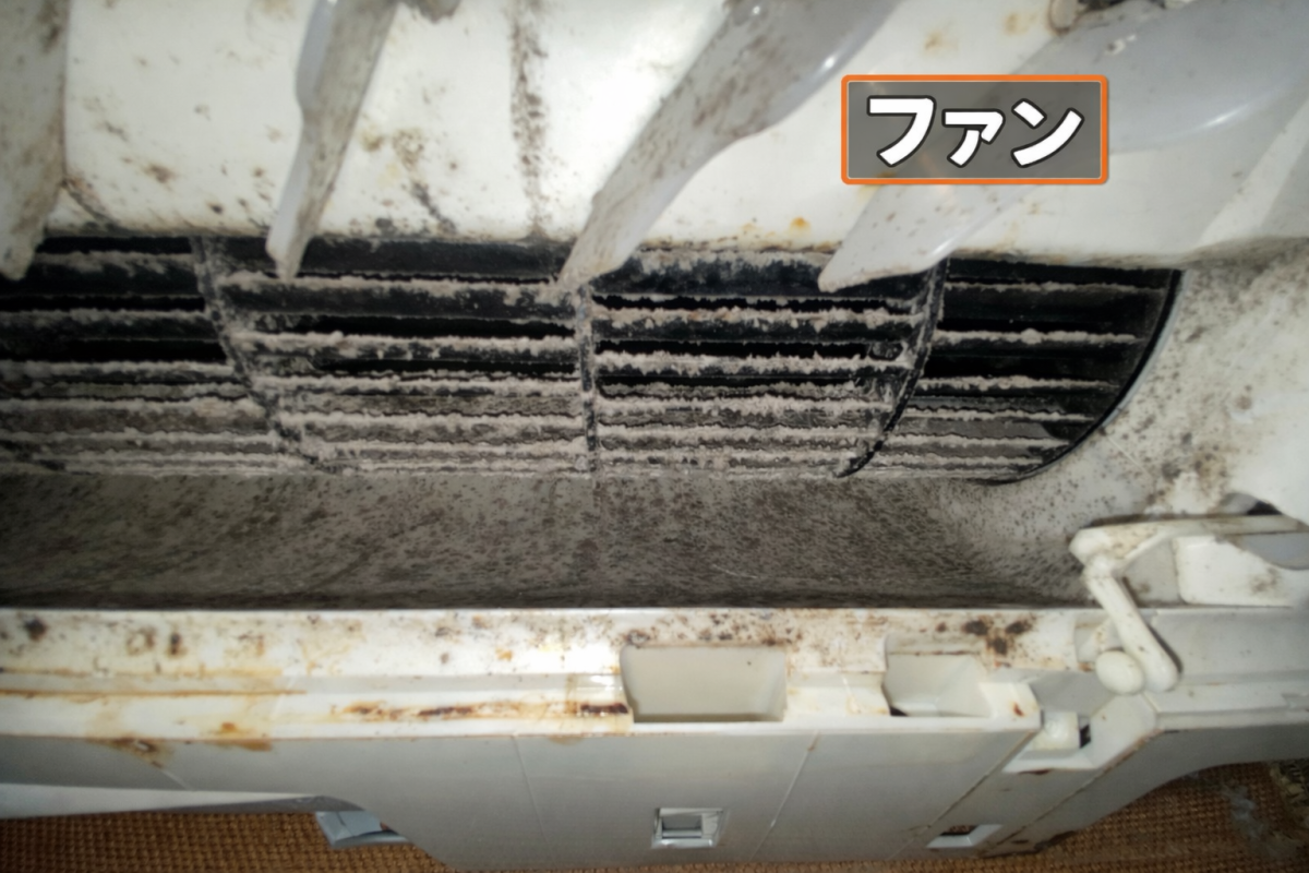 使うと黒いカビが風が出る所から見えていてずっと気になっていて今回クリーニングすることにしたとの事です。