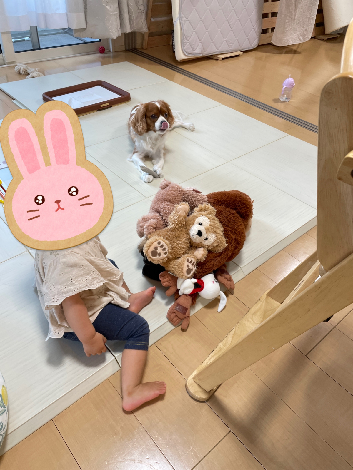 帰宅後は、娘がぬいぐるみたちを一箇所に集めて楽しそうに遊んでいました笑
