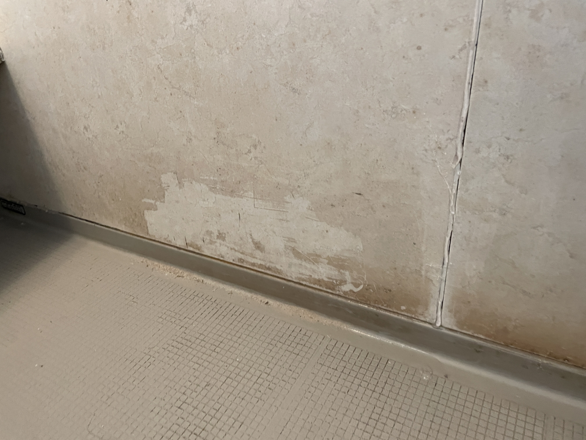壁についた、かなり分厚い石鹸カス汚れもこの通り!
