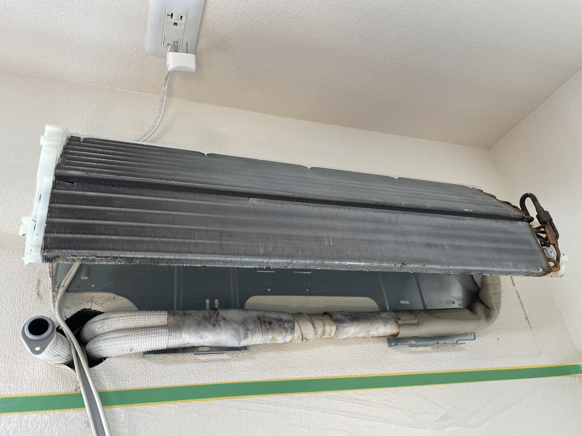 いざファンとドレンパンを外して、熱交換器の裏を見てみると、、、