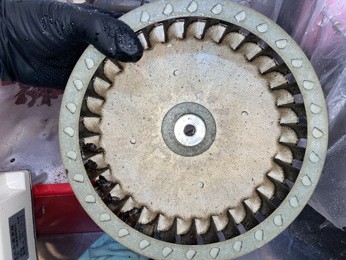 そしてこちらがシロッコファンが入っていたドラムの内部。