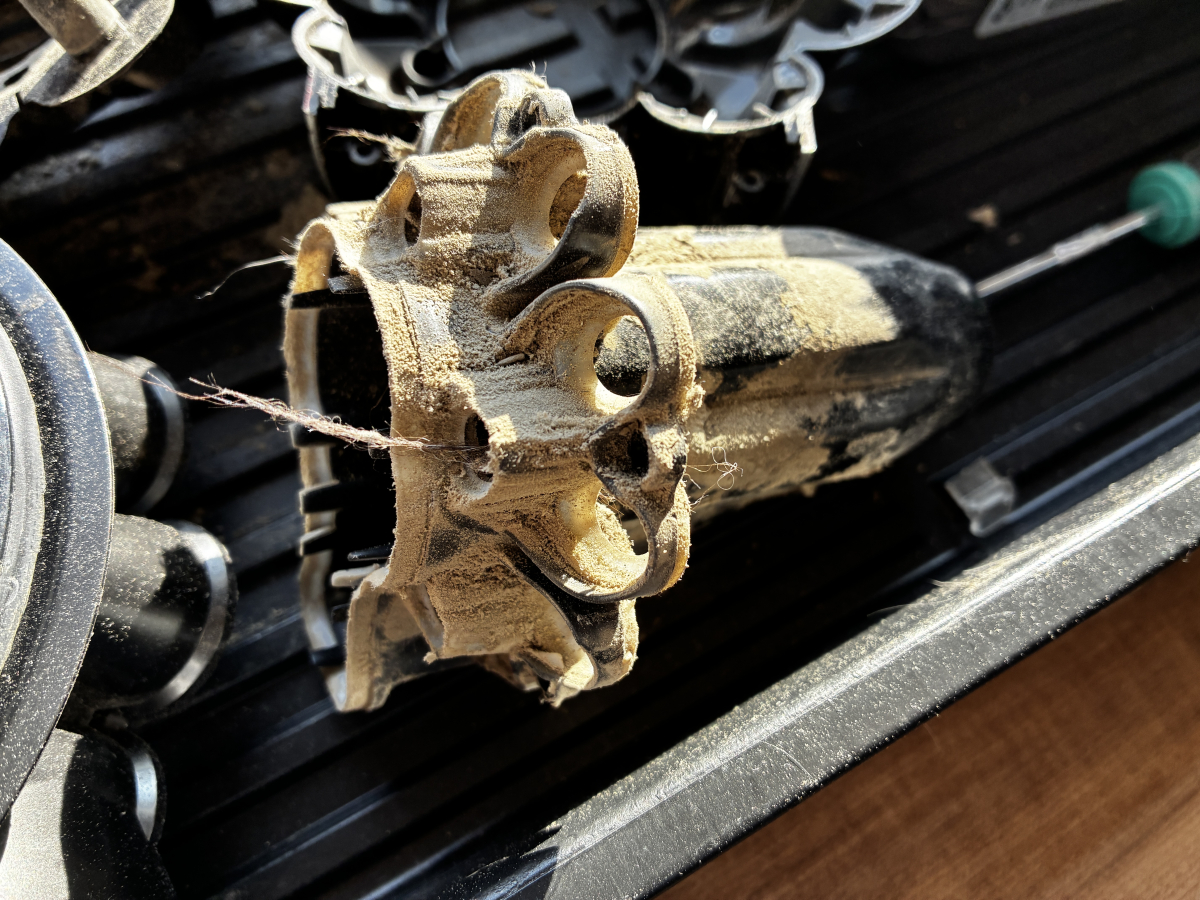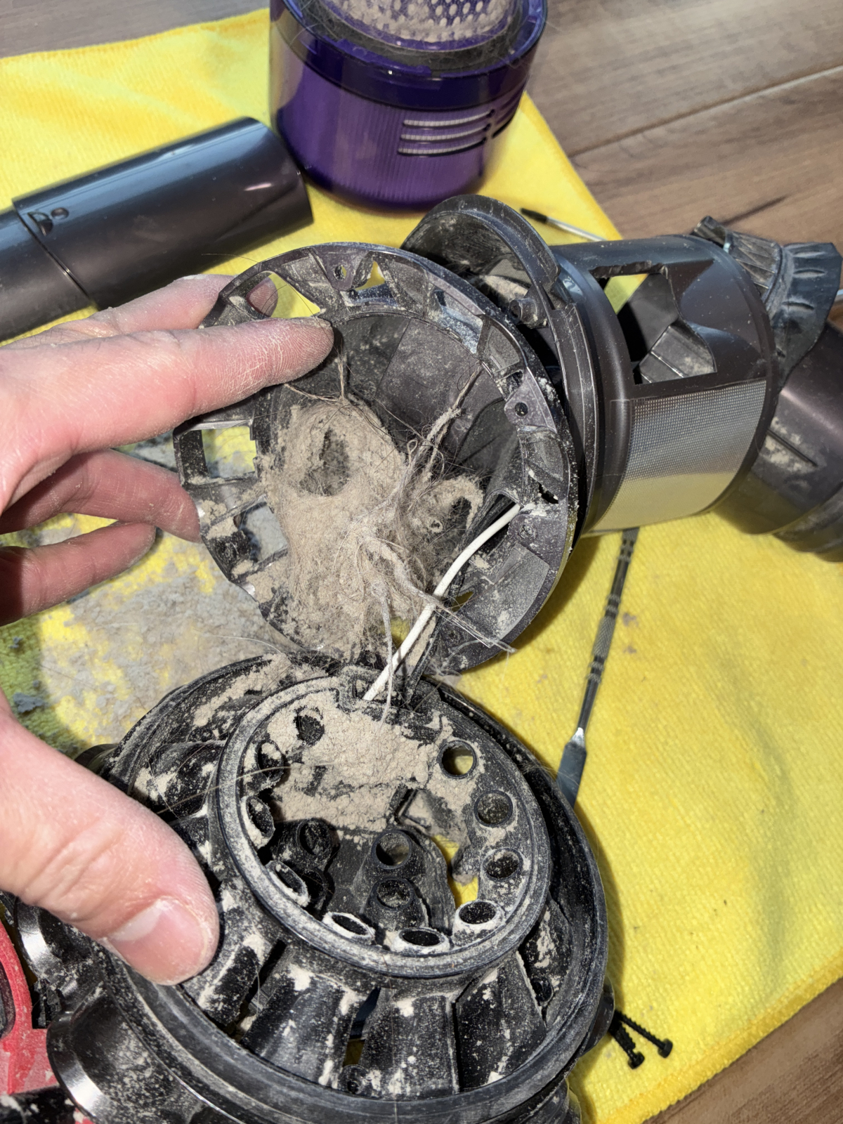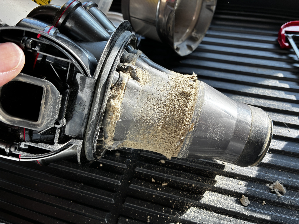 ↓実際に犬の抜け毛が大量に詰まったサイクロン内部の写真