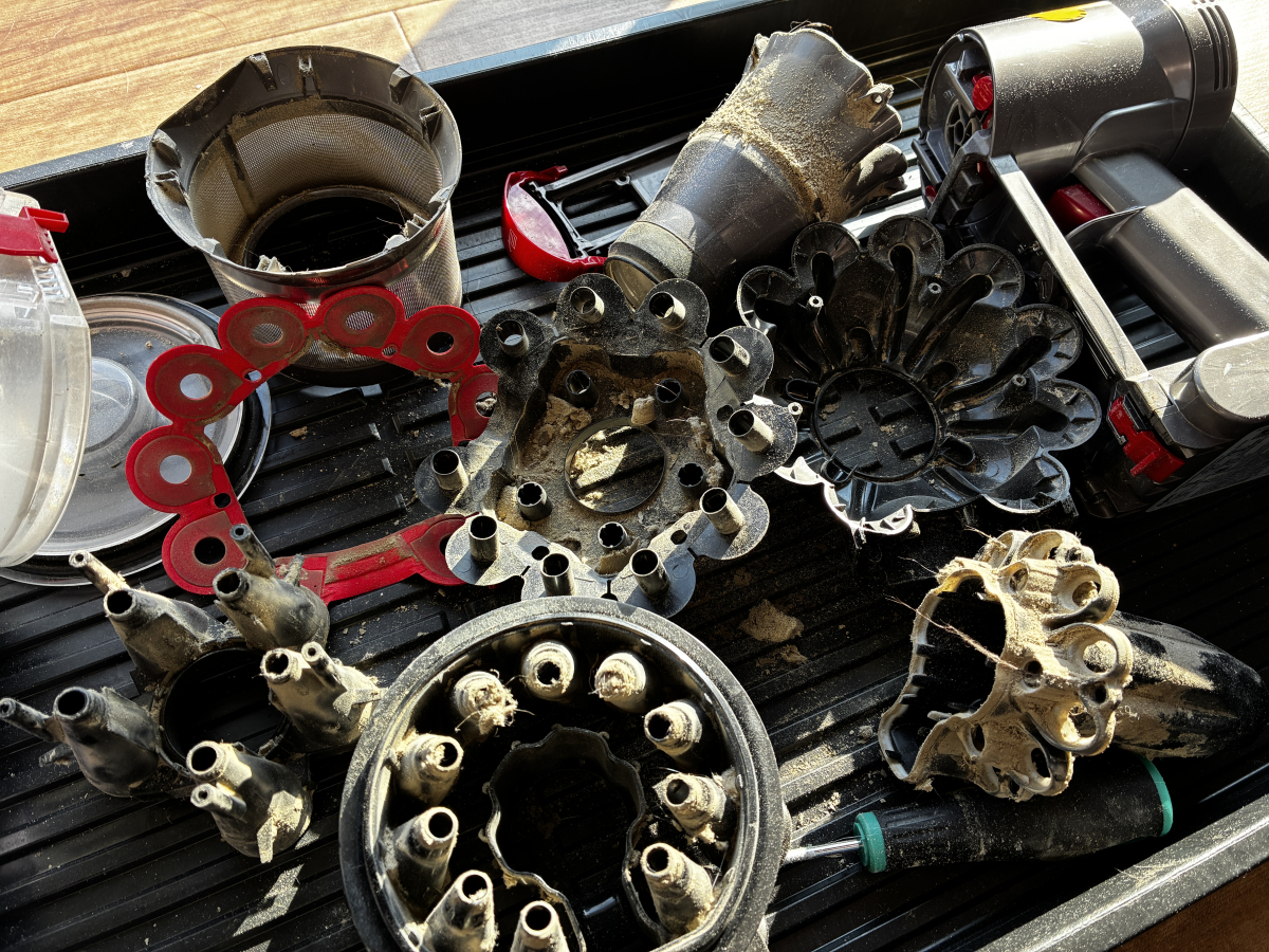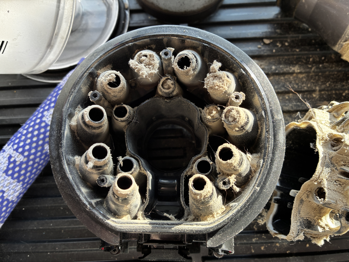ダイソンのサイクロン内部は複雑な構造になっており、微細粉塵や抜け毛がつまりやすくなっております。