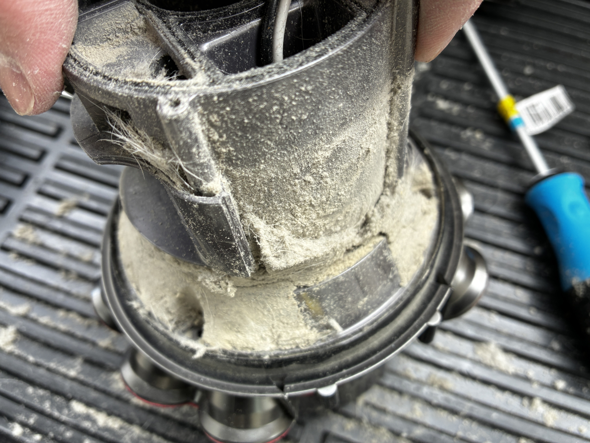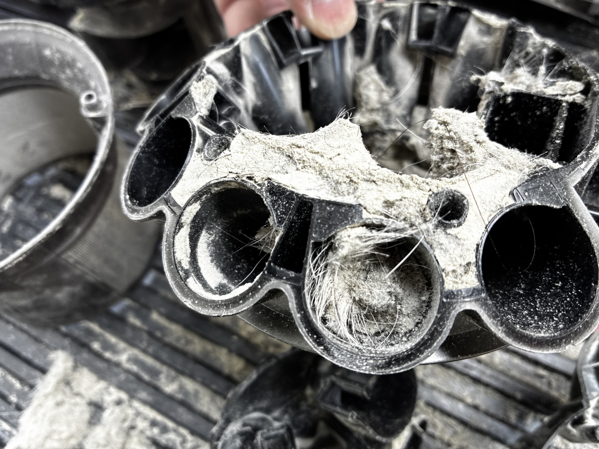 今回はやはりサイクロン内部のホコリや毛の詰まりが原因だったようです。