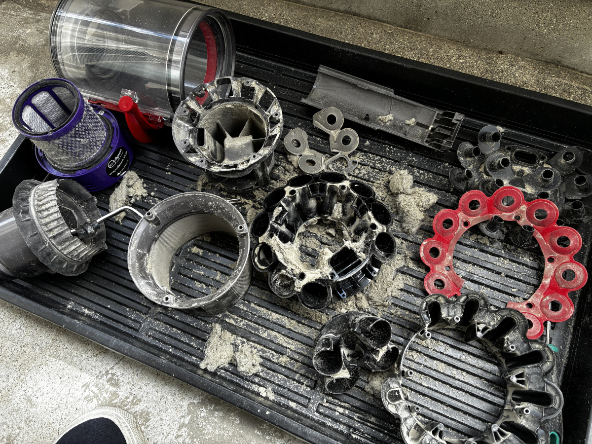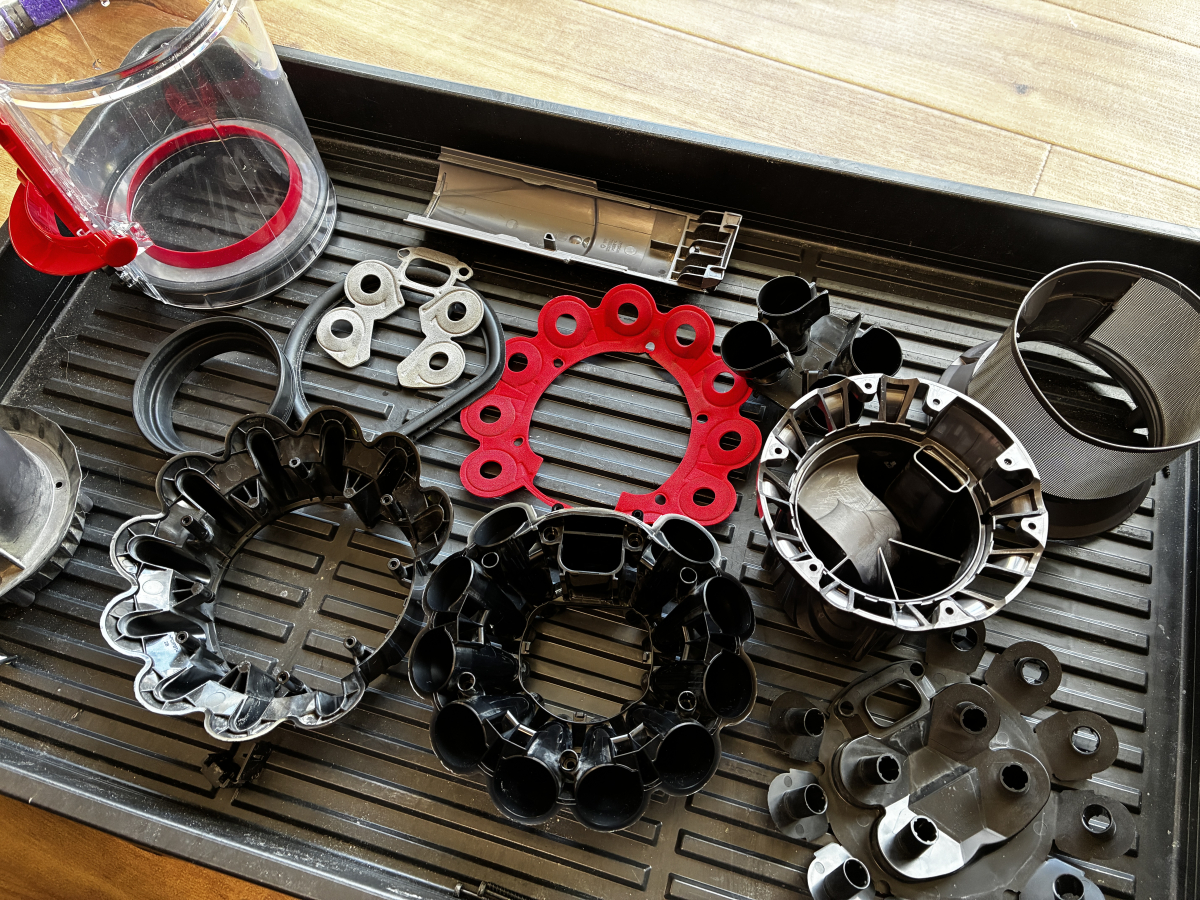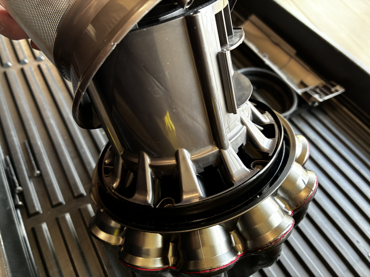 このように、ダイソンの掃除機は内部にたくさんのパーツが組み込まれております。