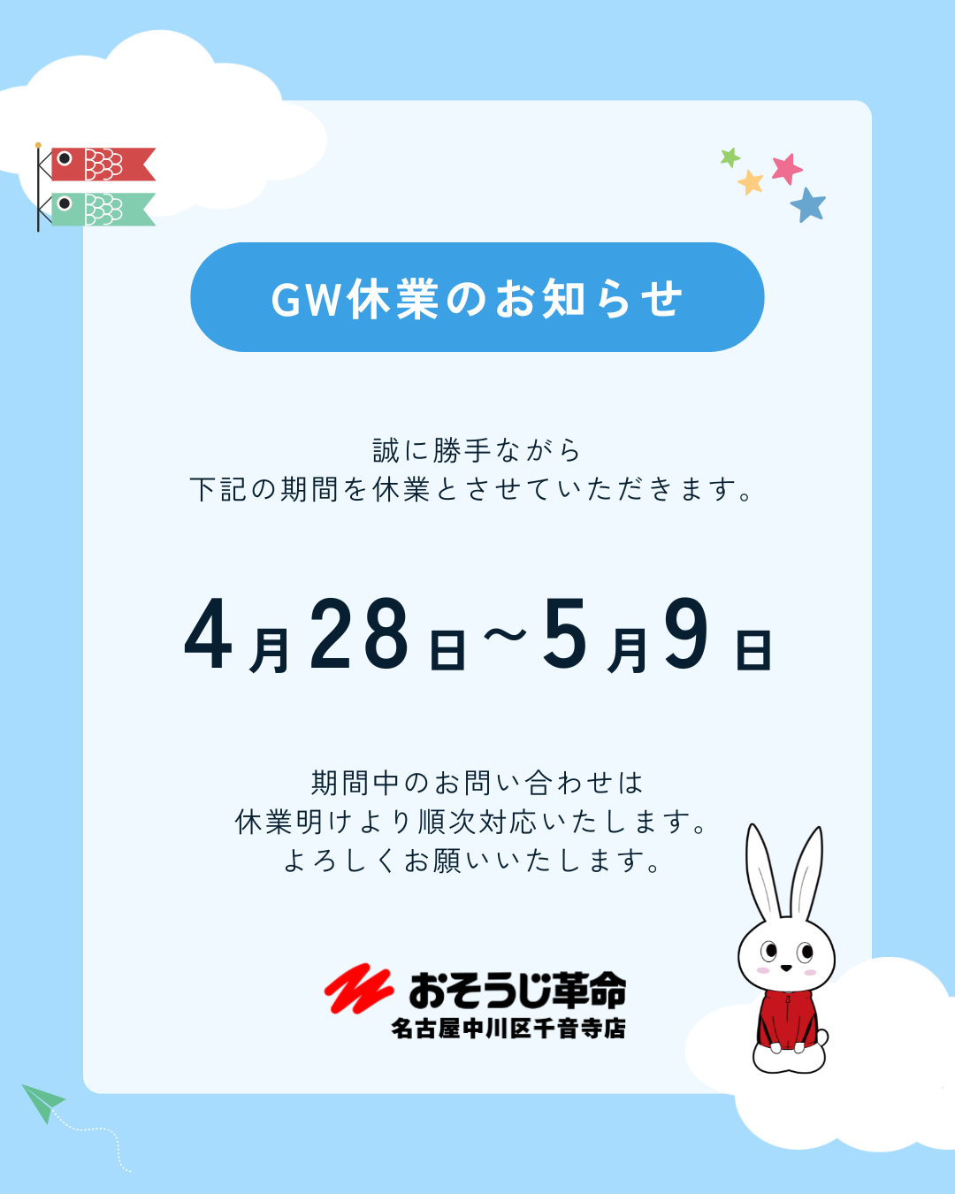【おそうじ革命 名古屋中川区千音寺店】愛知県にオープン!店長の奥村が、お掃除のお悩みを解決します!