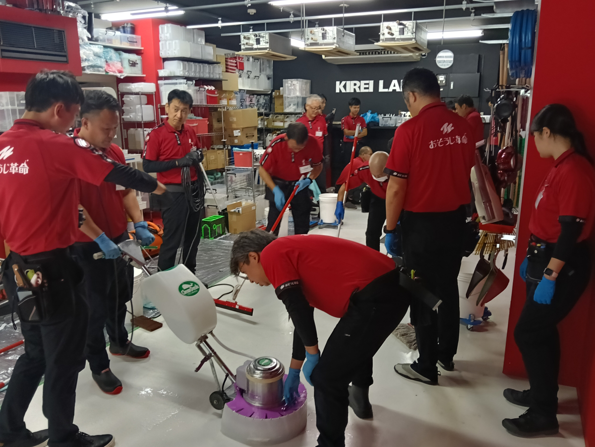 本日の研修では、定期清掃に欠かせない床機械洗浄を学びました。ポリッシャーで床を磨き、角や隅はエッジパッドで仕上げ、汚水を回収した後に水拭き・乾拭きを丁寧に行うことで床が見違えるほどきれいになります。汚水をすぐに処理しないと跡が残ることも学び、清掃の質は細部へのこだわりで決まると感じました。