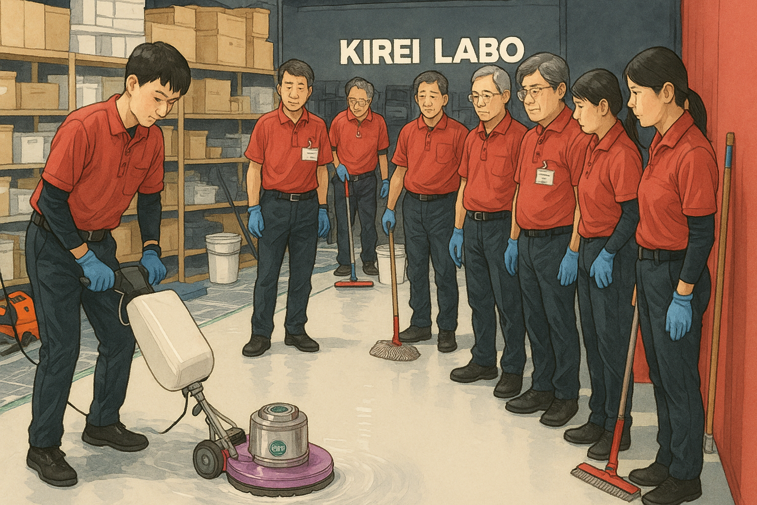 本日の研修は、午前中に接客講義とロールプレイを実施。第一印象の大切さや作業前の説明の仕方、仕上がり確認など、クレームを防ぐために必要な対応を具体的に学びました。ロールプレイでは相手役からフィードバックを受け、自分の言葉づかいや説明不足に気づける良い機会となりました。午後は昨日に続いてポリッシャーの練習を行い、安定した動作を意識。お客様への安心感と確かな技術、その両方を磨くことがプロの仕事につながると実感しました。