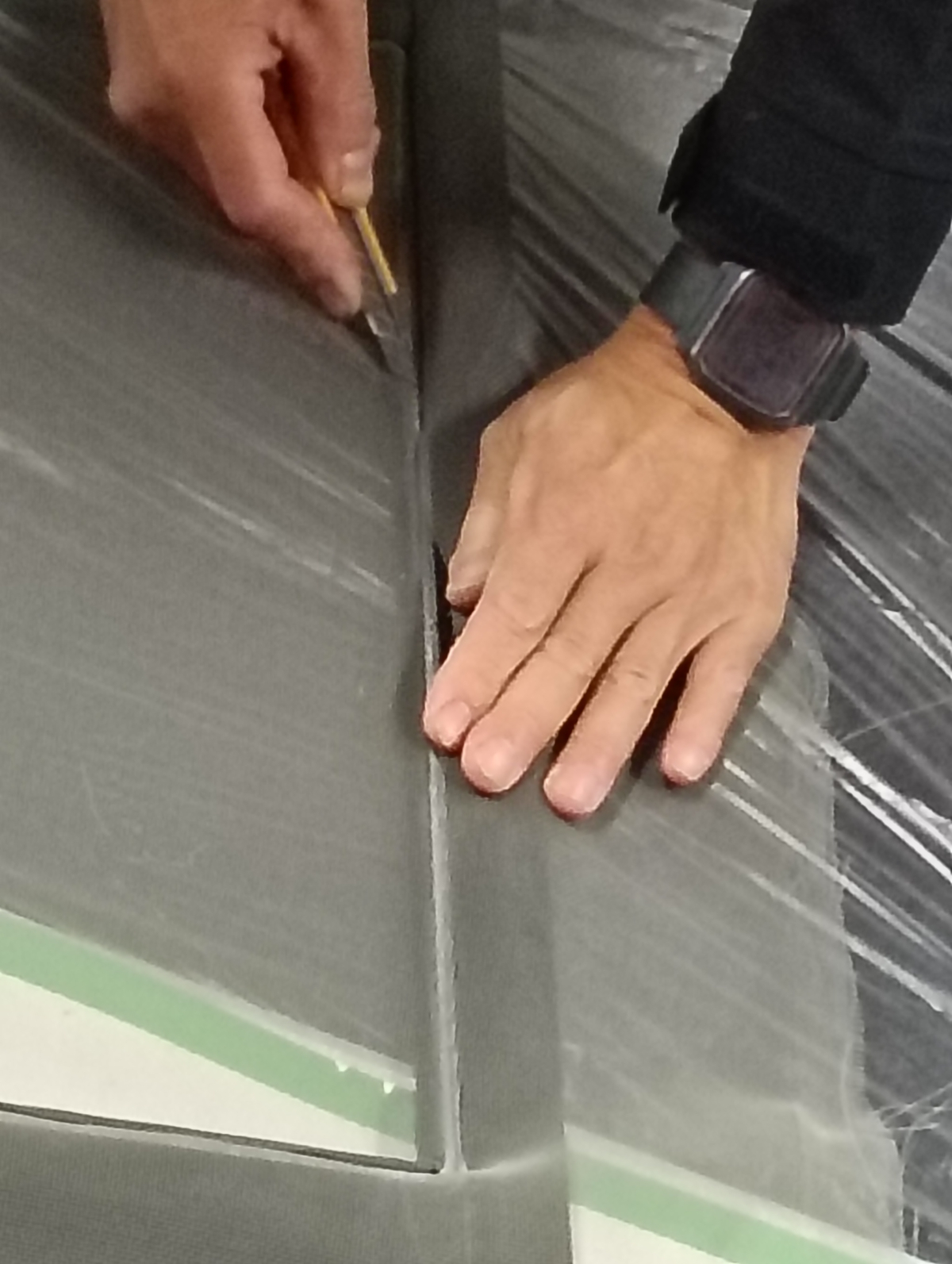 本日の午前後半は、講師の遠藤オーナーによる雨戸張替えの実演を見学。職人のような手際の良さに感動しながら、実際に自分の手でも挑戦しました。力加減や貼り込み方にコツがあり、最初は苦戦しましたが、最後には納得できる仕上がりになりました。