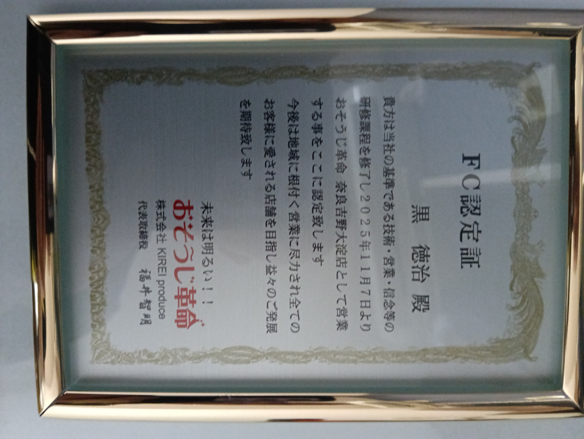 ▶おそうじ革命奈良吉野大淀店 代表 黒徳治 いよいよ11月27日オープンです