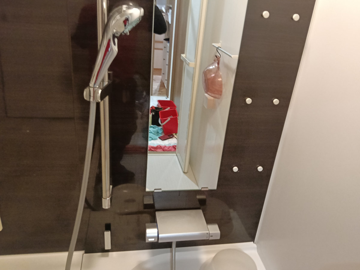 3月7日、この日はレンジフード、浴室、トイレ2か所、トイレタンク、そして浴室エプロン内部のクリーニングをご依頼いただきました。お伺いしたお宅は、杉板の無垢床と漆喰の壁がとても美しく、自然素材のぬくもりを感じる素敵なお住まいでした。