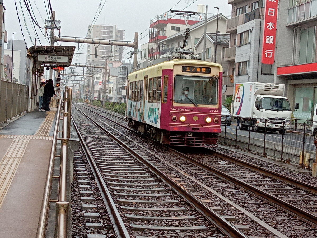 「都電」という電車があります。チンチン電車とも呼ばれています。発車のとき合図でカンカーンって鐘の音が車内でなるんです(何でカンカン電車じゃないんだろう)。三ノ輪から早稲田大学の辺りまで下町の風景を縫って走っています。かつてはこの都電、現在の地下鉄網のように都内を縦横に沢山の路線があったのだそうですが、現存しているのはこの路線だけです。