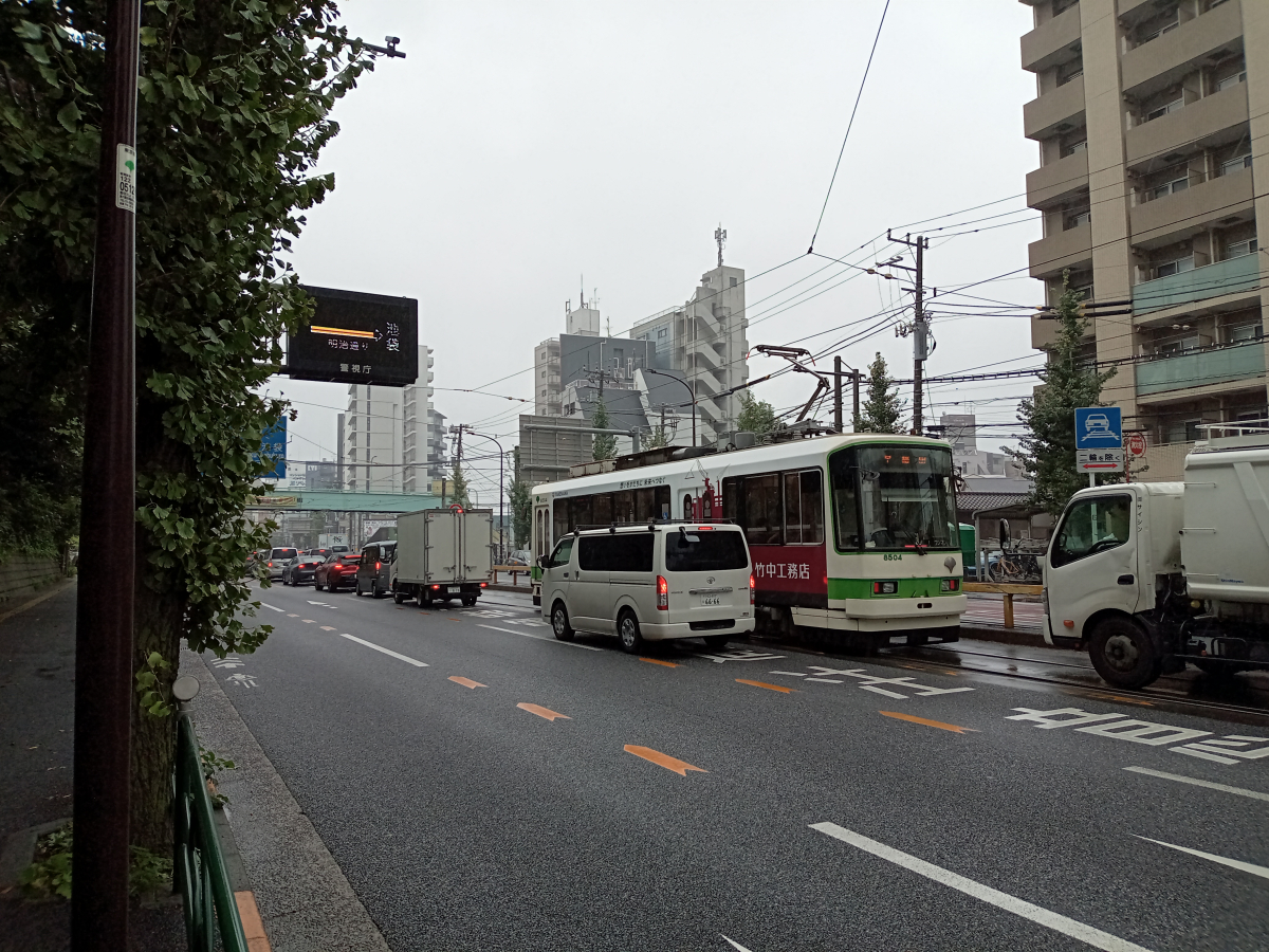東京以外でも路面電車が残っているところはいくつかありますが、ゆっくりと走る電車と街の風景と、趣のある景色になりますね。移動手段としては微妙ですが(笑)