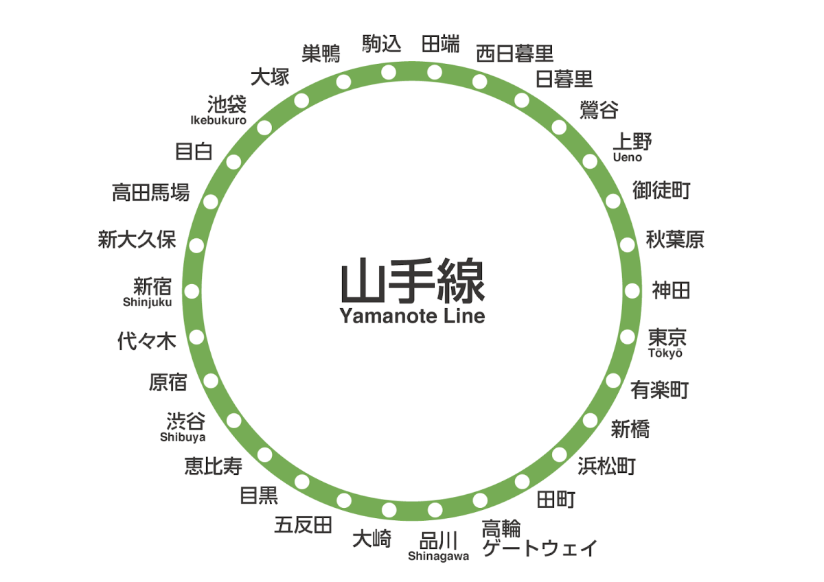そうすると、馬場の事務所の用事が済んで家に帰るときに、一日を振り返ると、まーるい緑の山手線を一周してることに気付きます(笑)