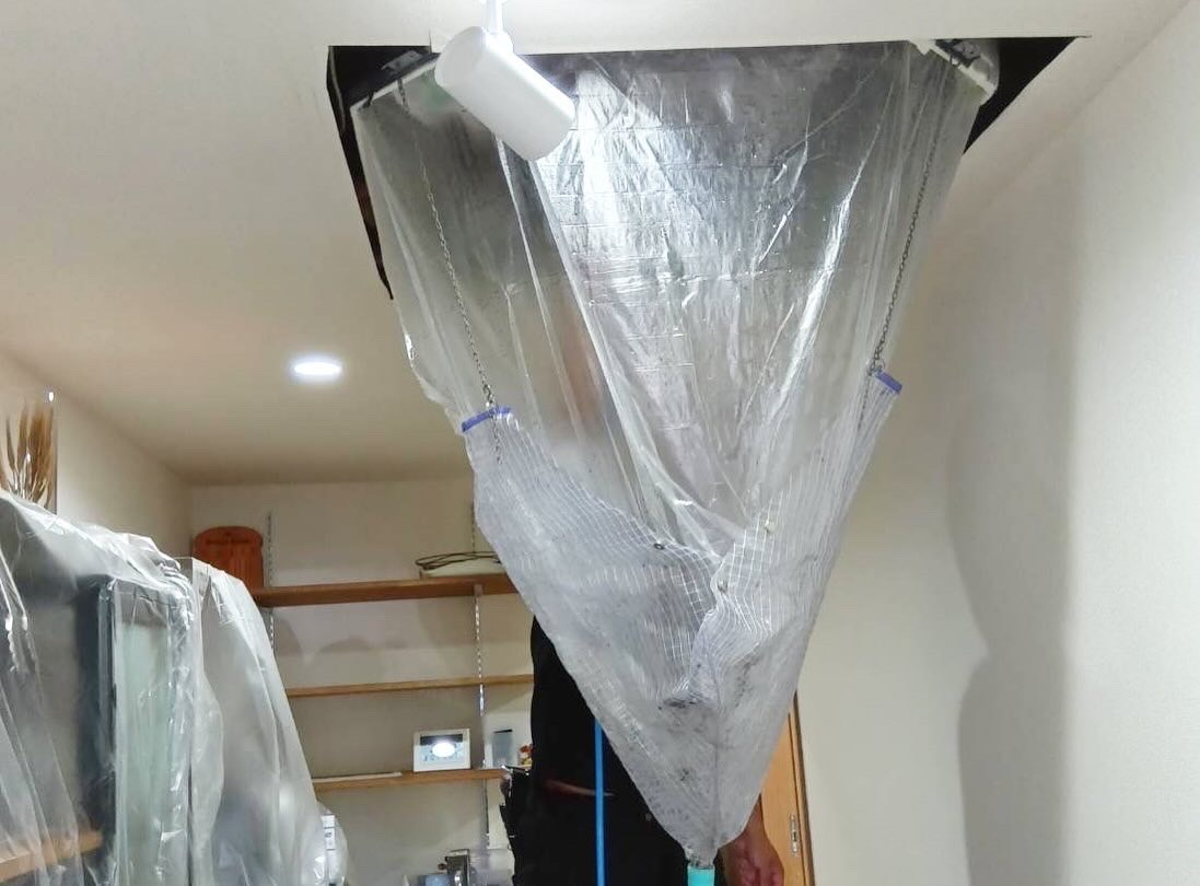今回のエアコンは天井埋め込み型、4方向から風が出るタイプのエアコンです