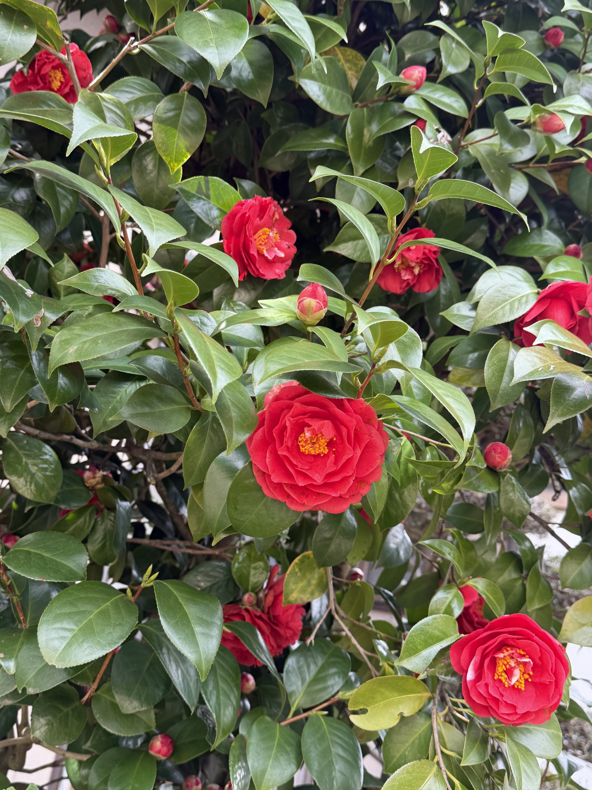 ”Google大先生”の教えによると、赤い椿の花言葉一つに「謙虚な美徳」というものがあるそうです。