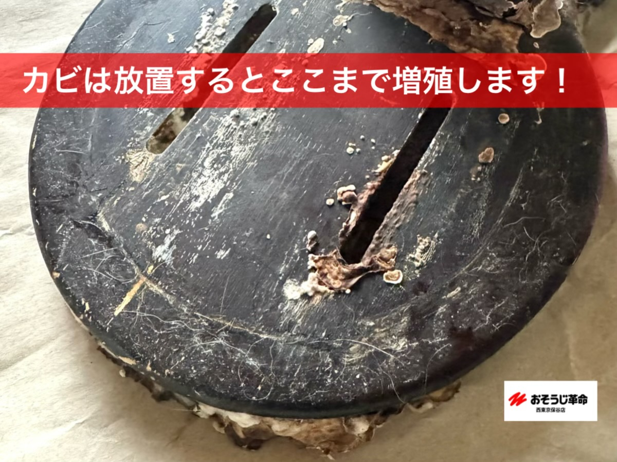 白いカビが増殖して、完全にこびりついている状態です