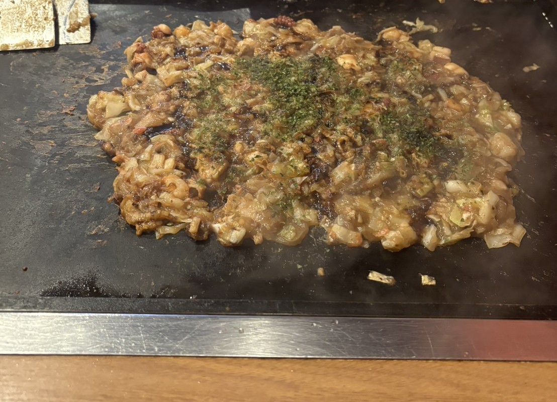 初めて食べたもんじゃ焼き。