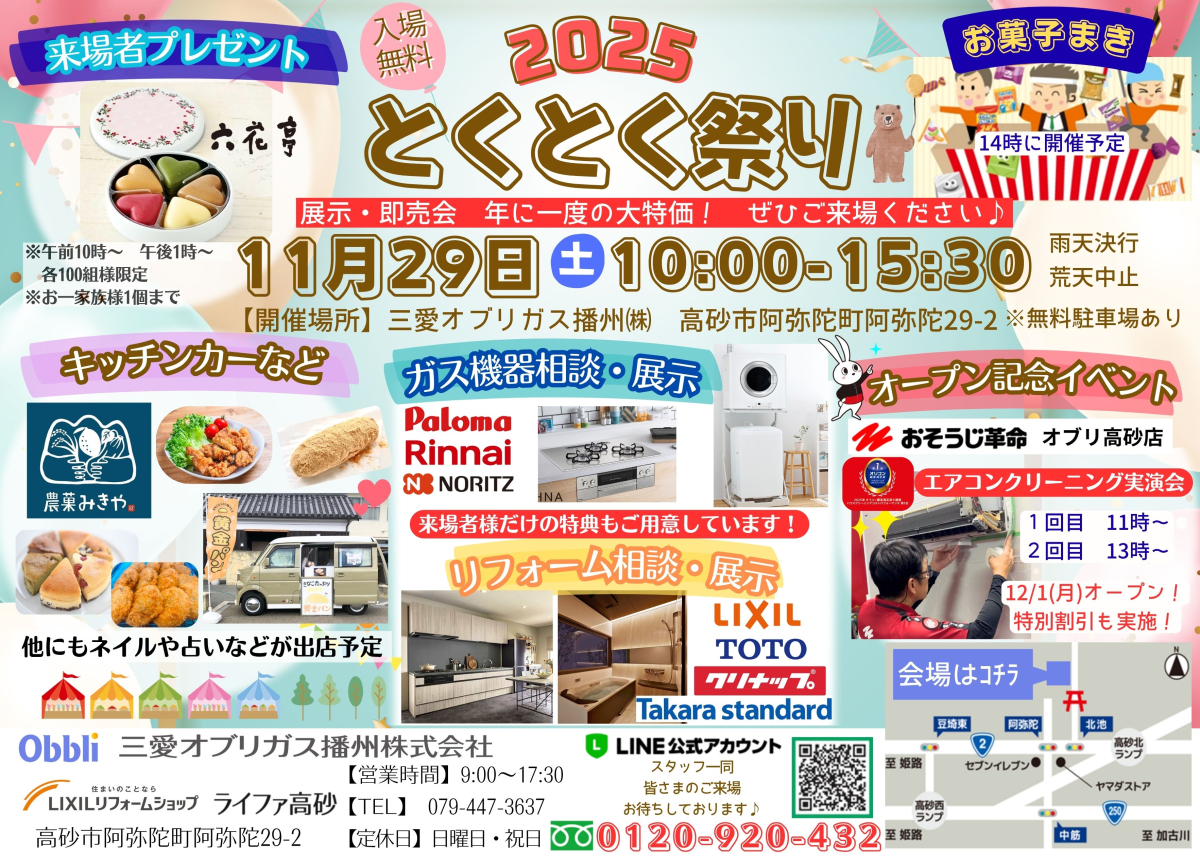 11月29日(土)に三愛オブリガス播州(株)のイベント「とくとく祭り」が開催されます。