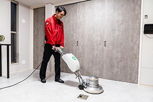 - フローリングには高品質なワックス系コーティング剤でツヤ出し&汚れ・キズから保護。