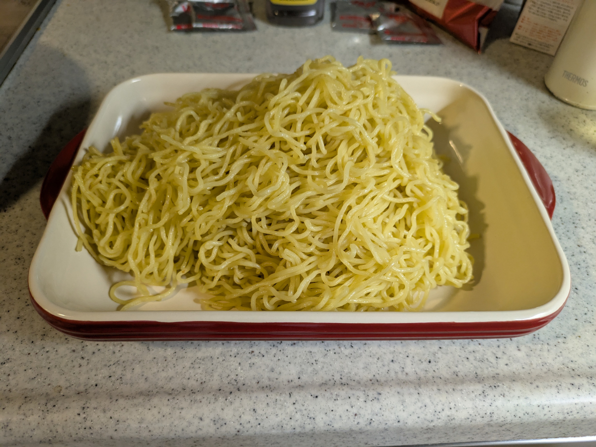 市販焼きそばに記載のレシピだと、肉・野菜炒めた後に麺入れて水入れて蒸し焼きですが、