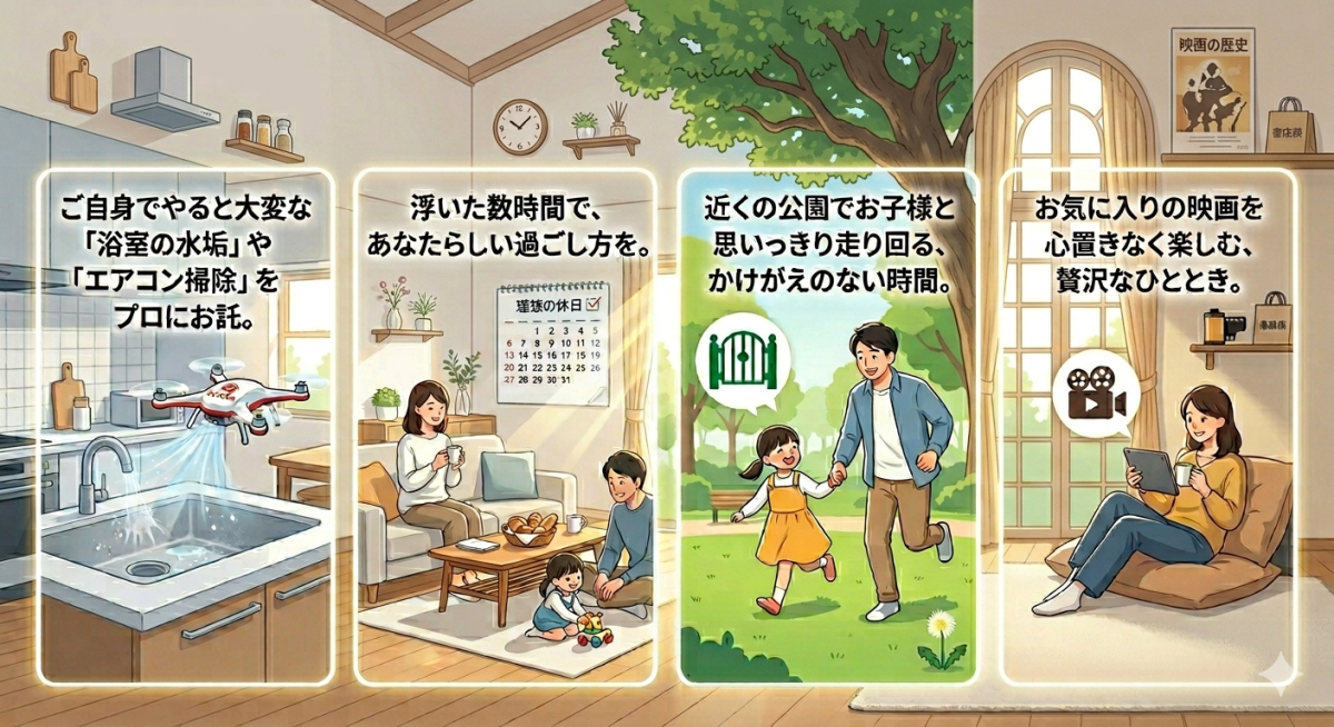 プロに掃除を任せることは、決して贅沢ではありません。 むしろ、家族の笑顔や心のゆとりを作るための「投資」です。