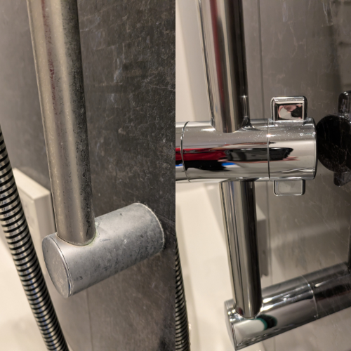 浴室でもよく使われていますが、清掃に行くと水垢で真っ白というのも珍しくありません。