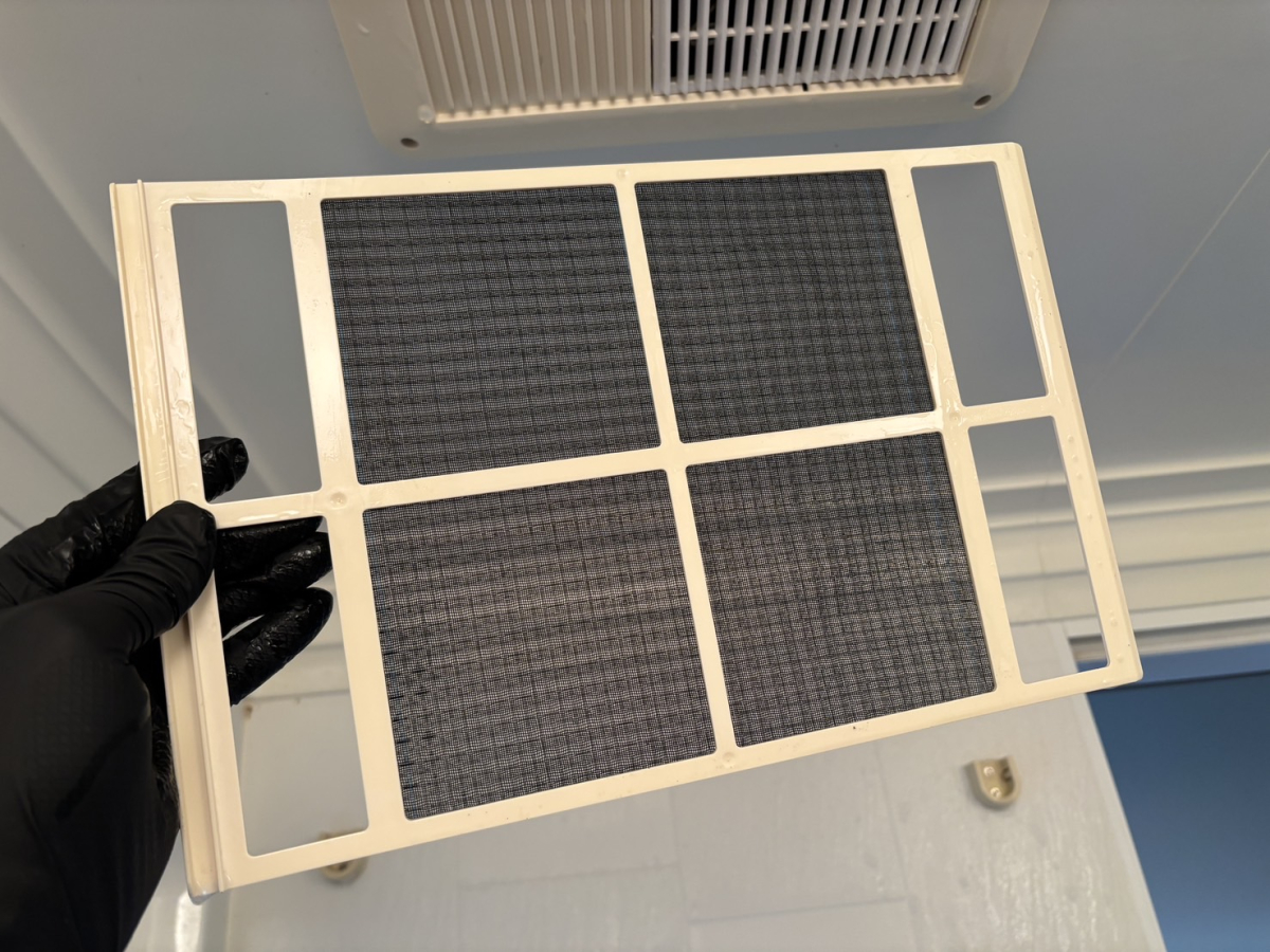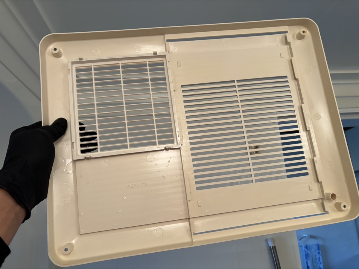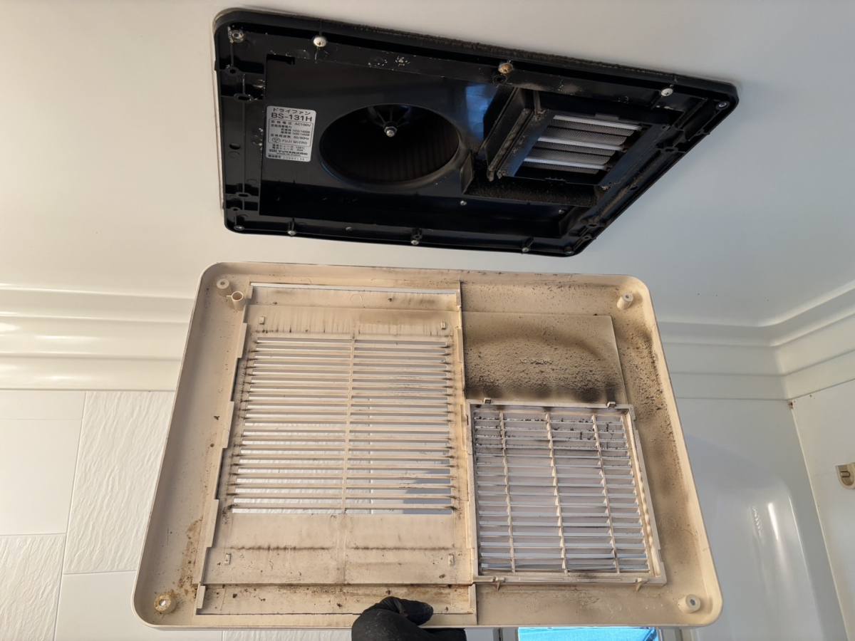 換気扇のファンはもちろんのこと、写真のように熱交換器や各種パーツ類も丁寧に洗浄させていただきました。