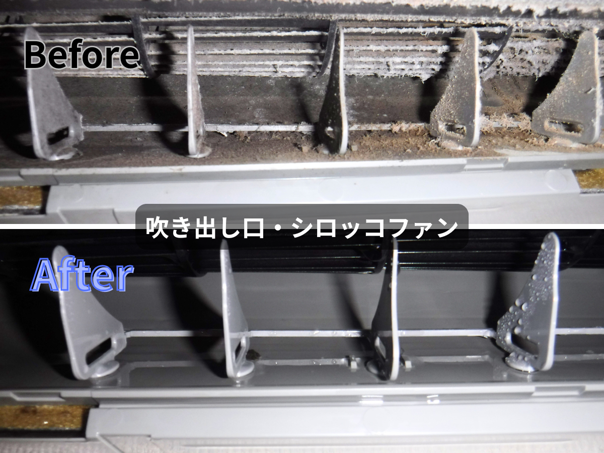 ✅吹き出し口 → 黒カビ+ホコリがびっしり