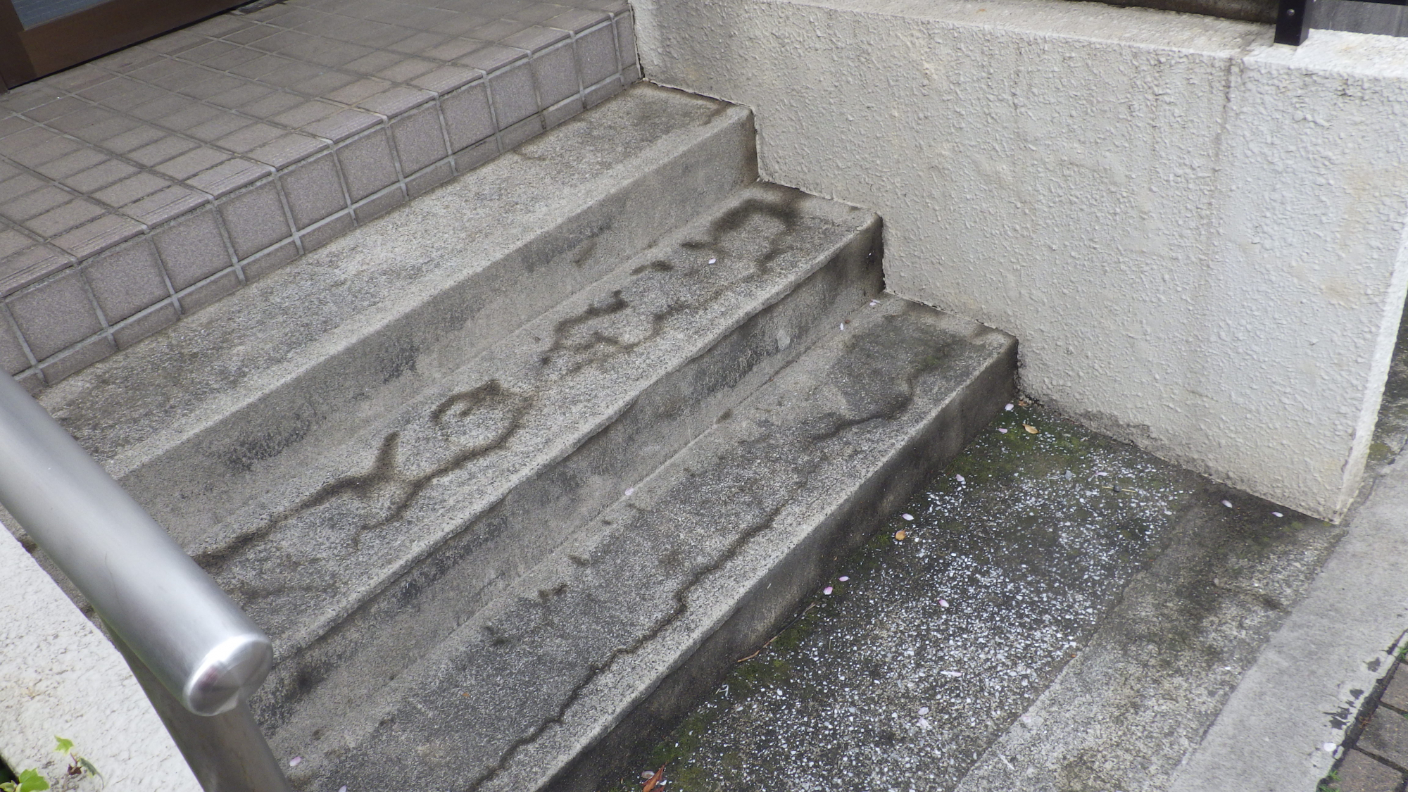 エントランス前のコンクリート階段の清掃は高圧洗浄機で綺麗に!!