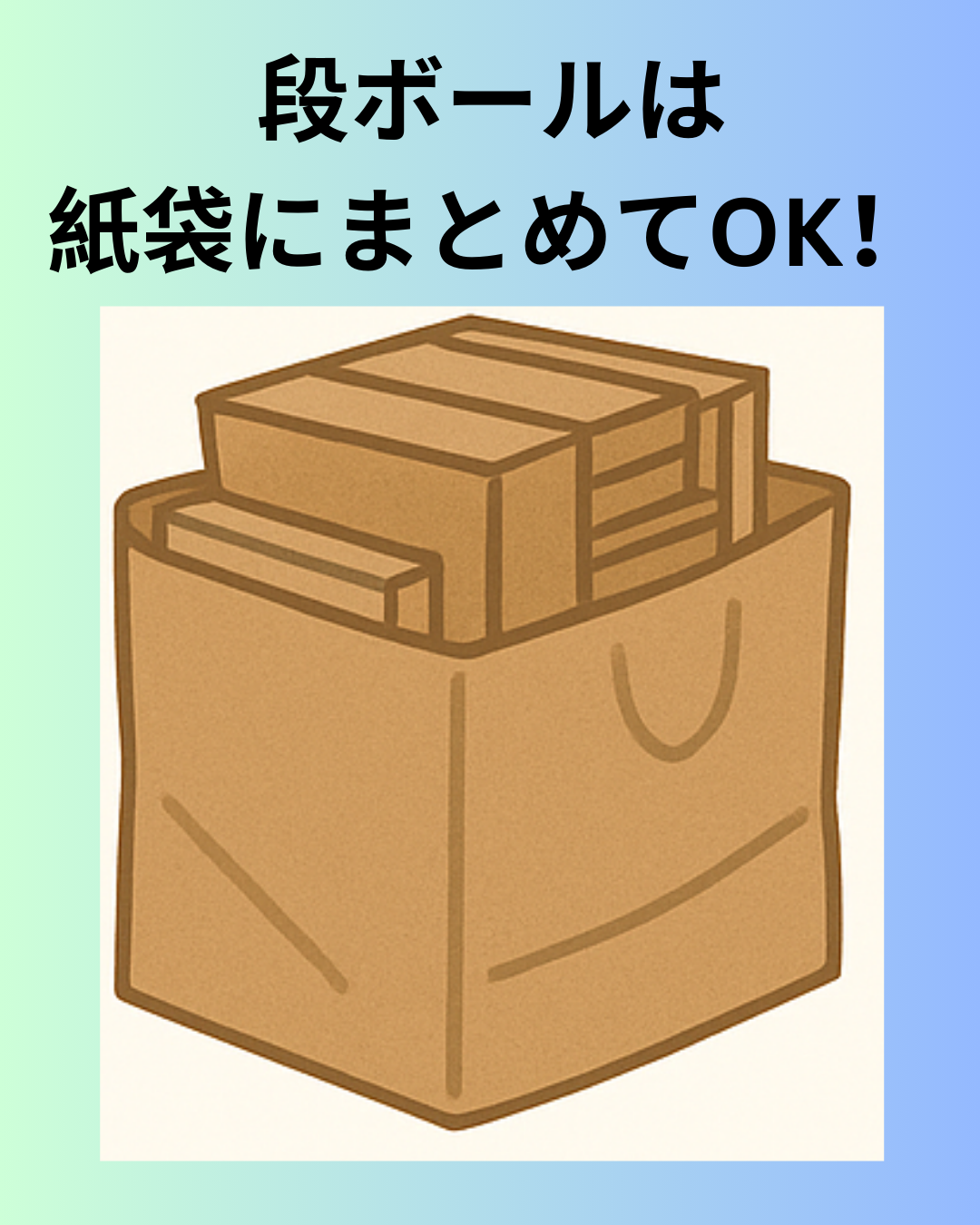 → 大きな紙袋にまとめて入れる裏技で対応可能です(中身が見えるように!)。