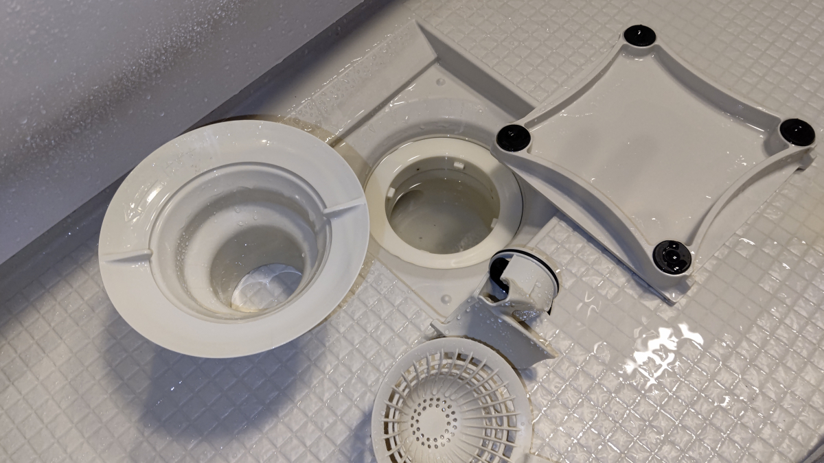 おそうじ革命新宿四谷外苑店ではエアコンパーツを洗浄する際、浴室をお借りするので、サービスで排水口を分解洗浄してお返ししております❗