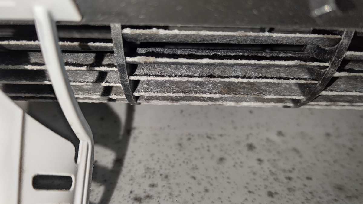 夏場お部屋は暑く、エアコン内部全体が冷たくなります。その温度差から結露を生み、やがてカビが蓄積します。つまり↑の汚れはほぼカビです。