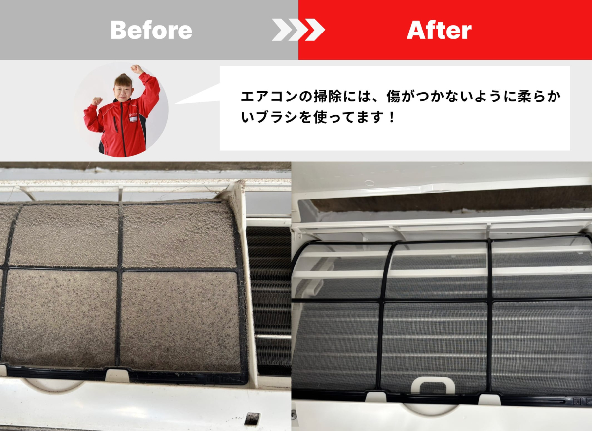 エアコンの掃除には、傷がつかないように柔らかいブラシを使ってます!