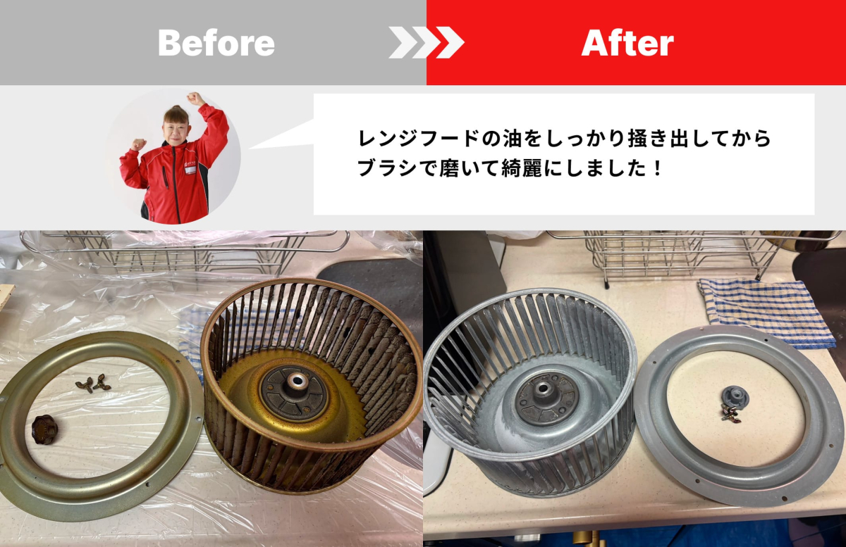 換気扇のプロペラについているほこりまで細かな汚れも綺麗にしました☺️