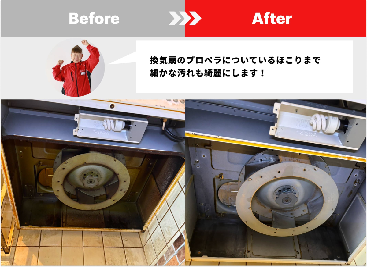 換気扇のプロペラについているほこりまで細かな汚れも綺麗にします!