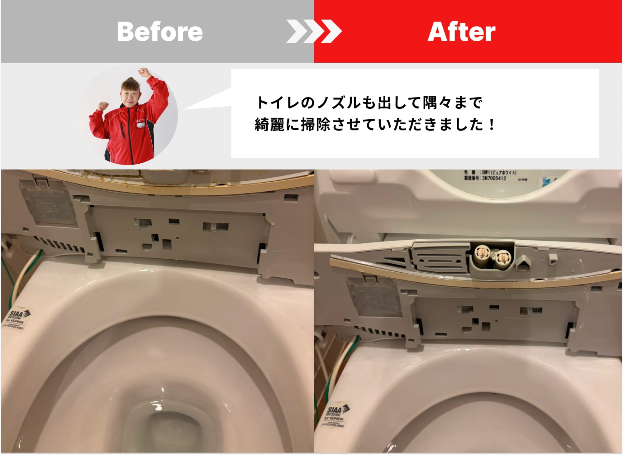 トイレ掃除のビフォーアフター✨ トイレ掃除のビフォーアフター✨ トイレのノズルも出して隅々まで 綺麗に掃除させていただきました!...