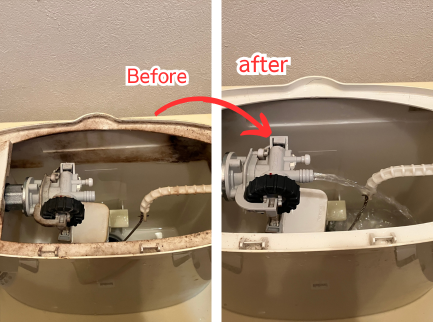内部の汚れを丁寧に落とすことで、タンクの中の水の流れもスムーズに。
