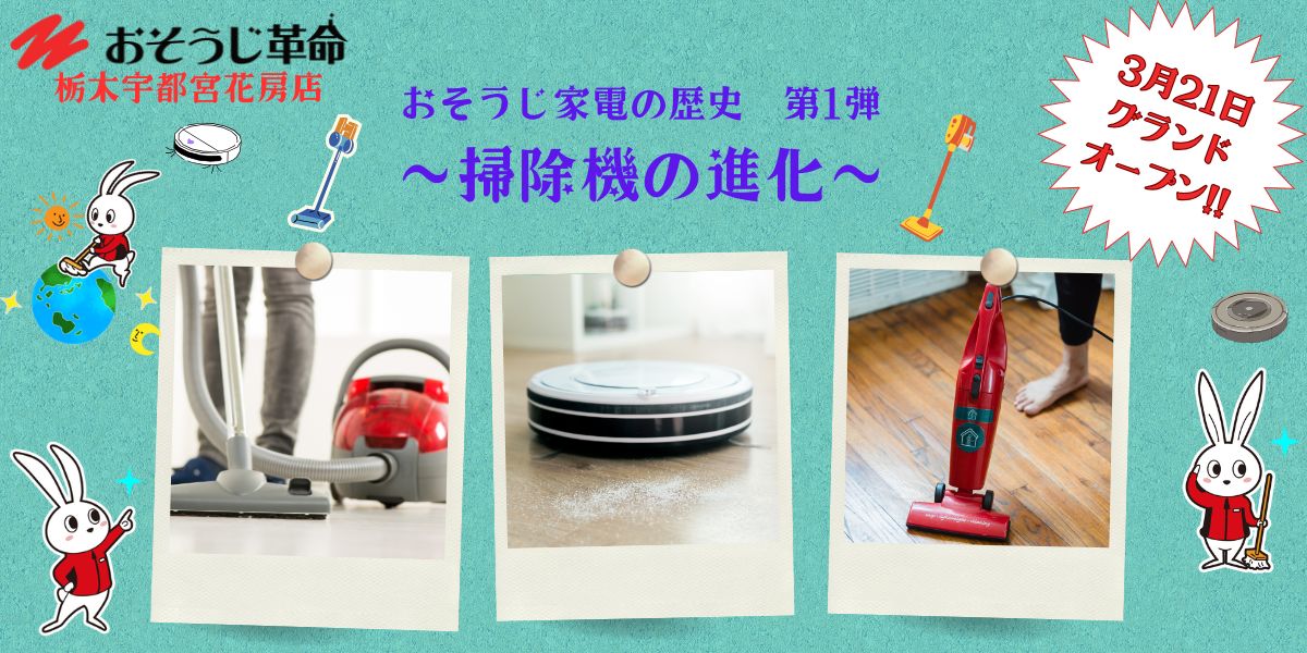 こんにちは!おそうじ革命 栃木宇都宮花房店のブログへようこそ。今回は、「おそうじ家電の歴史」の第1弾として、掃除機の進化についてお話ししたいと思います。掃除機が家庭に登場してから、どのように進化してきたのか、その歩みを一緒に振り返りましょう。