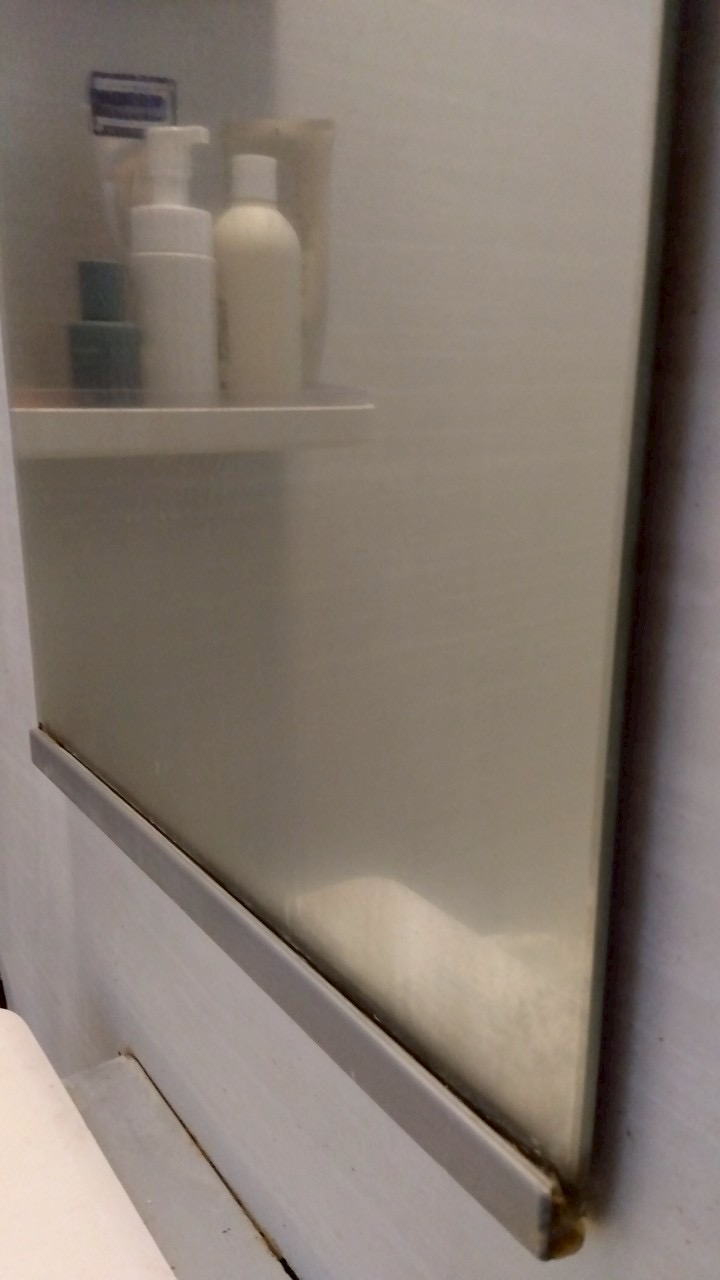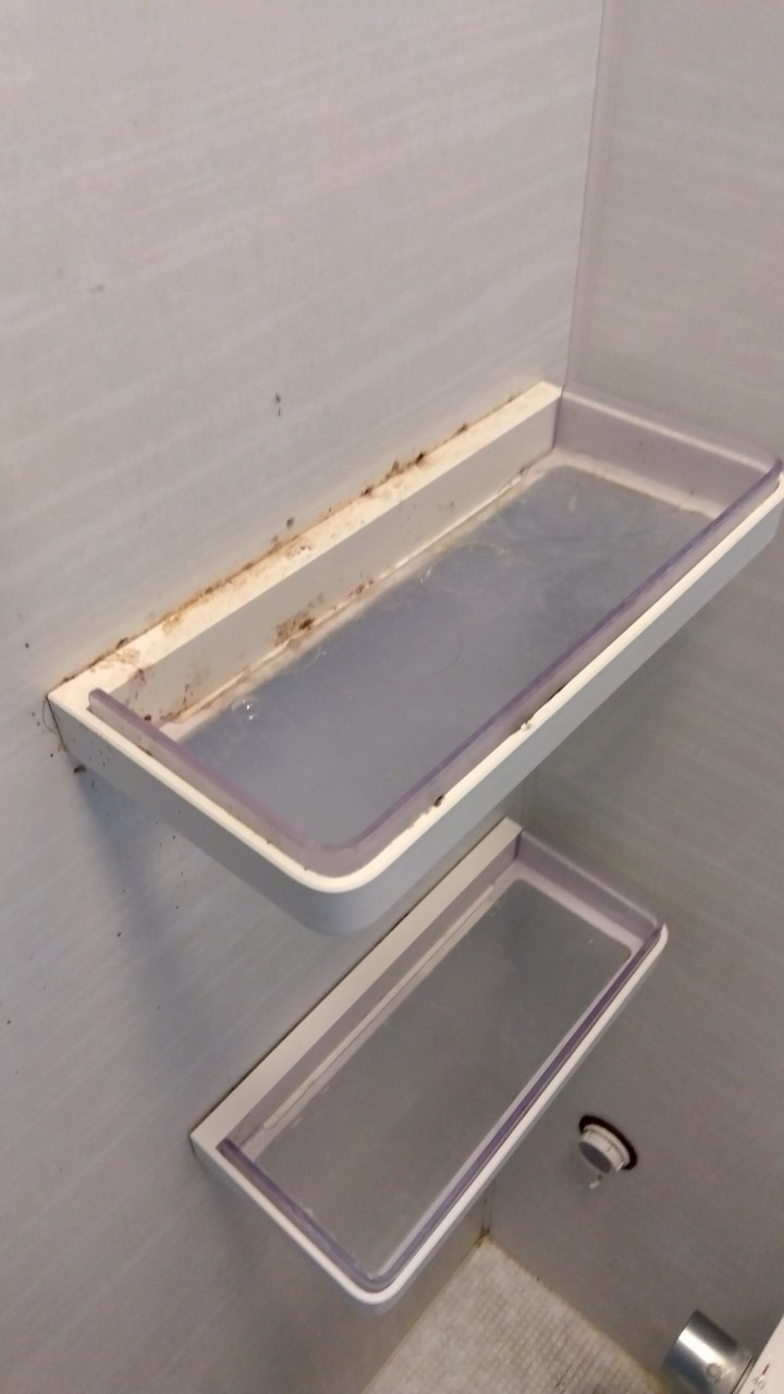 鏡やプラスチック部分の素材自体に水垢の成分が馴染みきってしまっていると完全には取り去れないこともあるそうですが、できる限り頑張らないと。