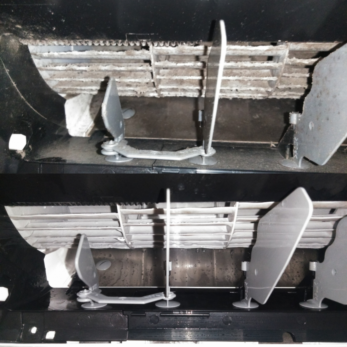 フィルターを掃除をした時に熱交換器や送風フィンの状態を見て下さい。
