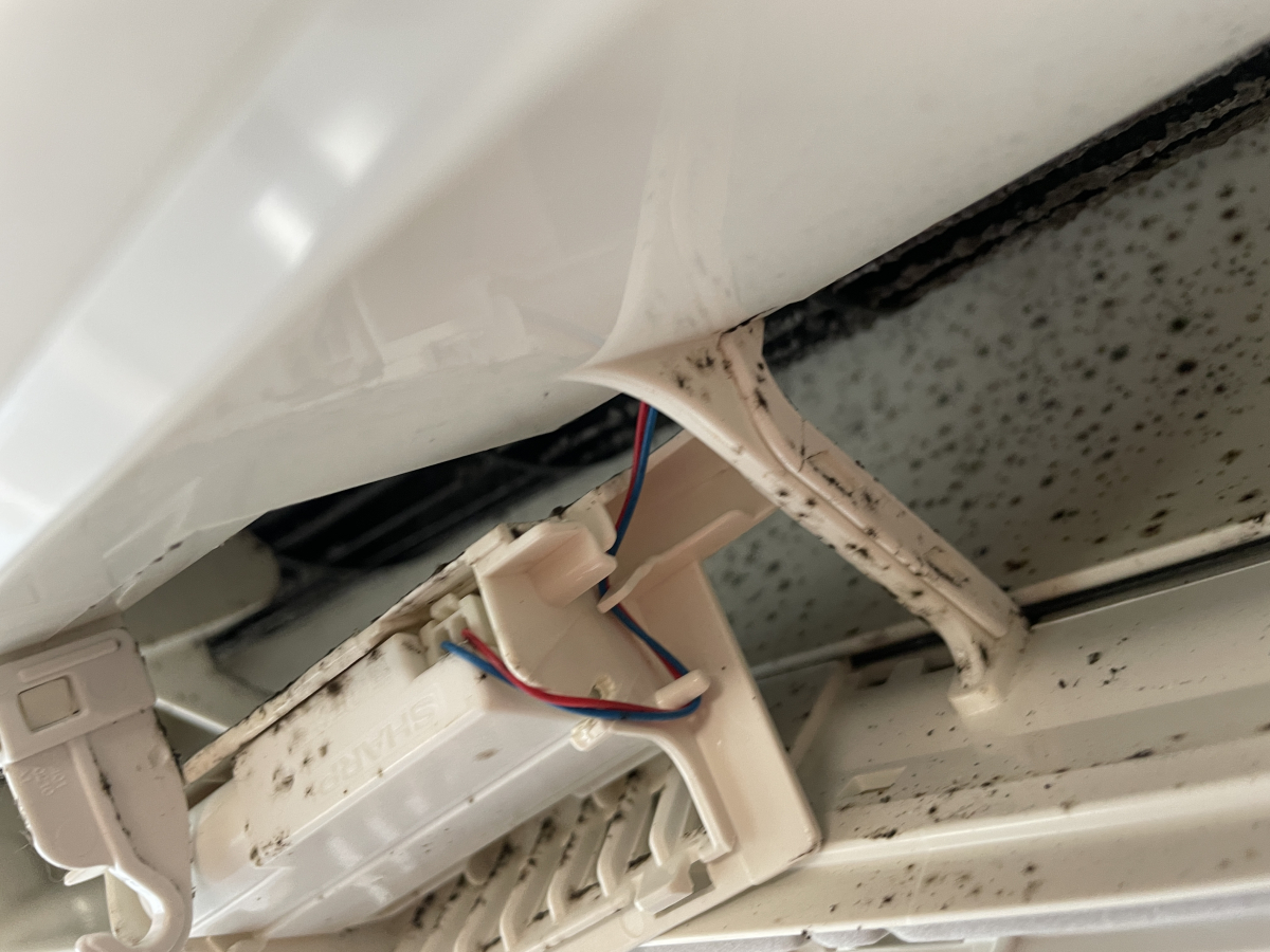一般エアコンの中には外せない?と思われる型式のものがありこちらの裏側が汚れているケースが多いのです。